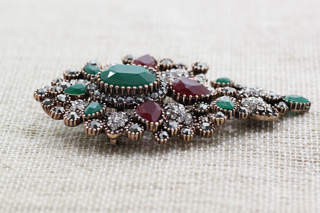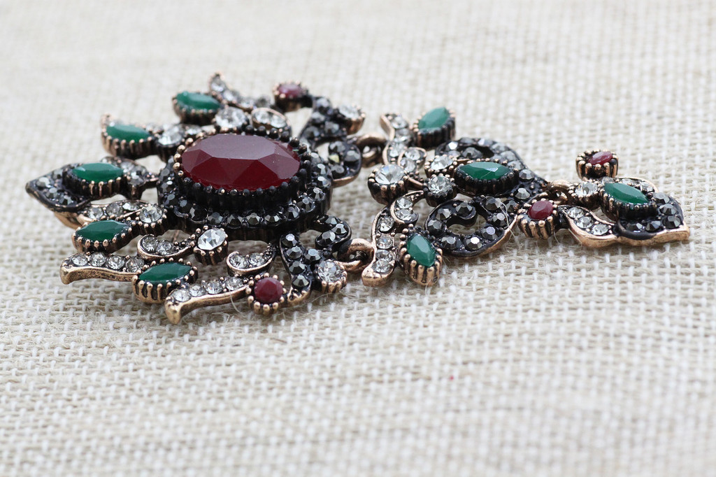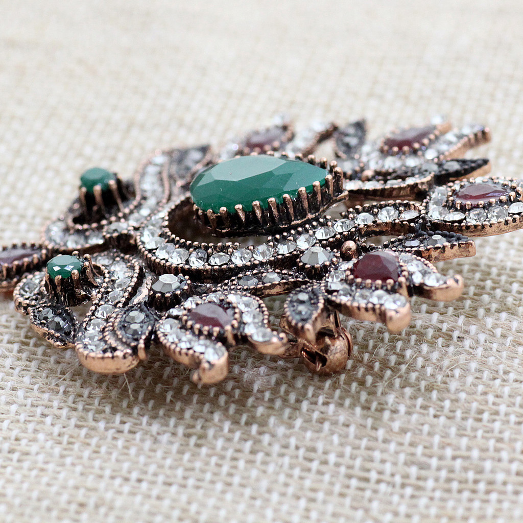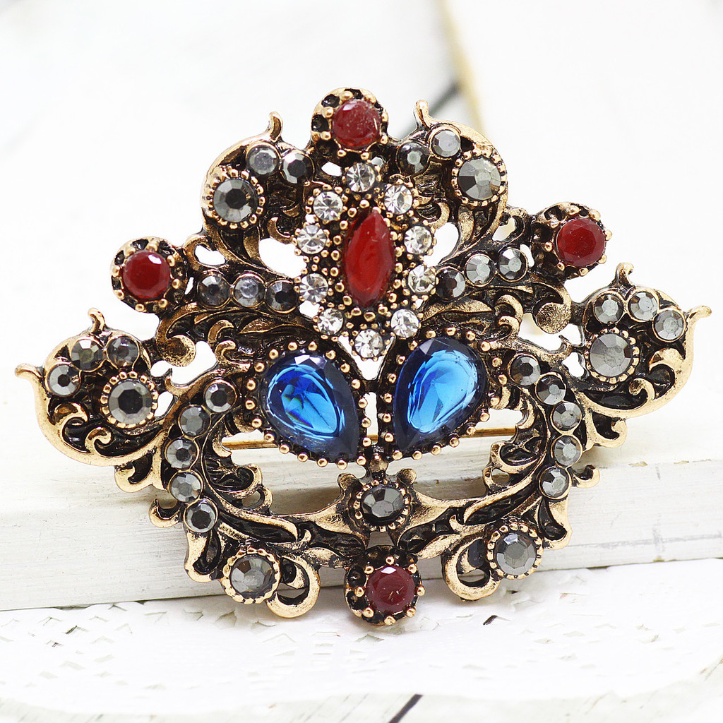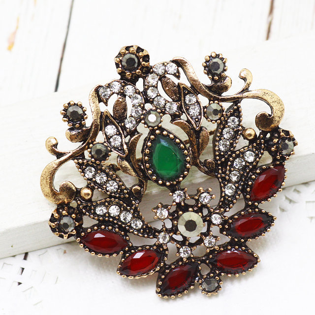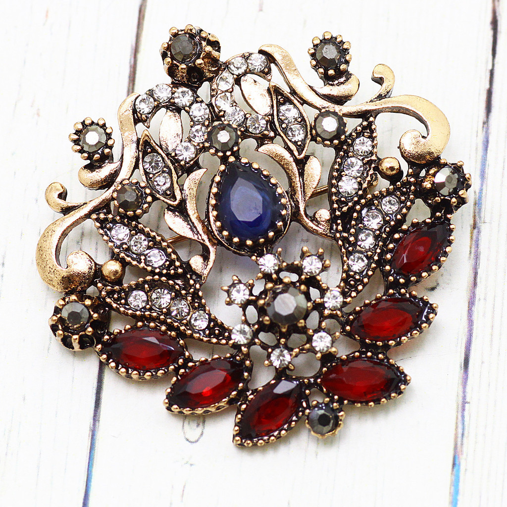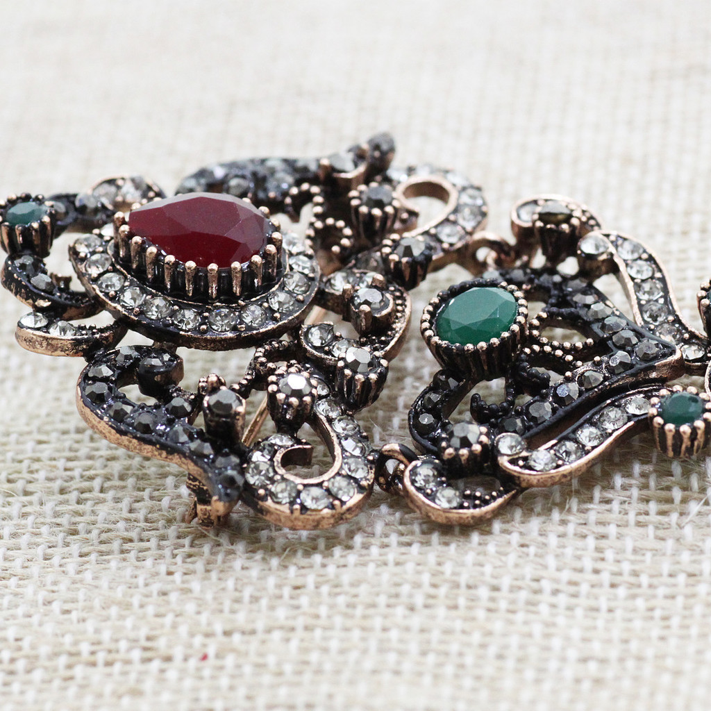 Красивая брошь восточного стиля  из специального гипоаллергенного ювелирного сплава,который покрыт золотом или устойчивым родиевым покрытием, предотвращающим раздражение кожных покровов..