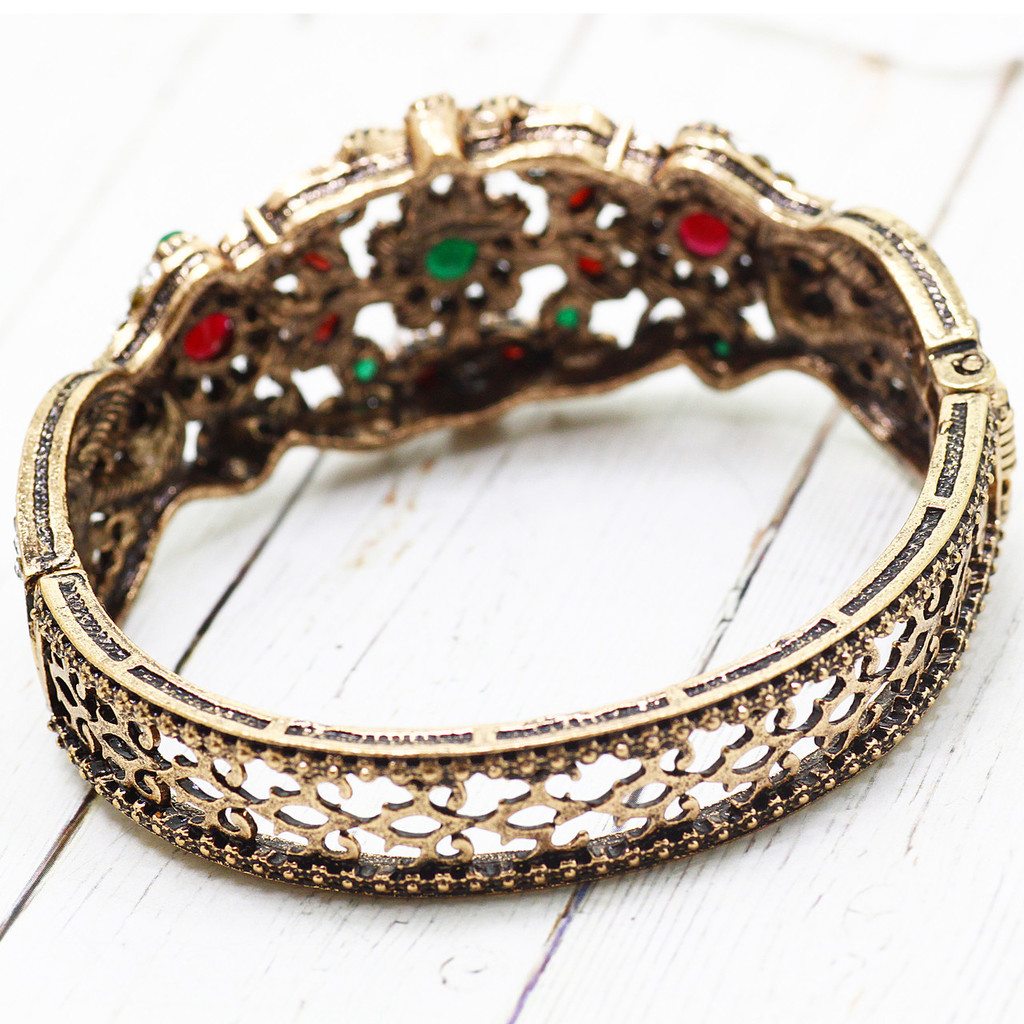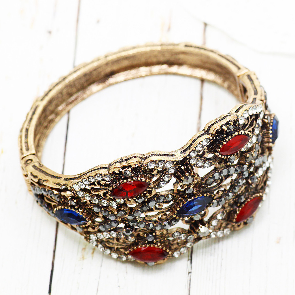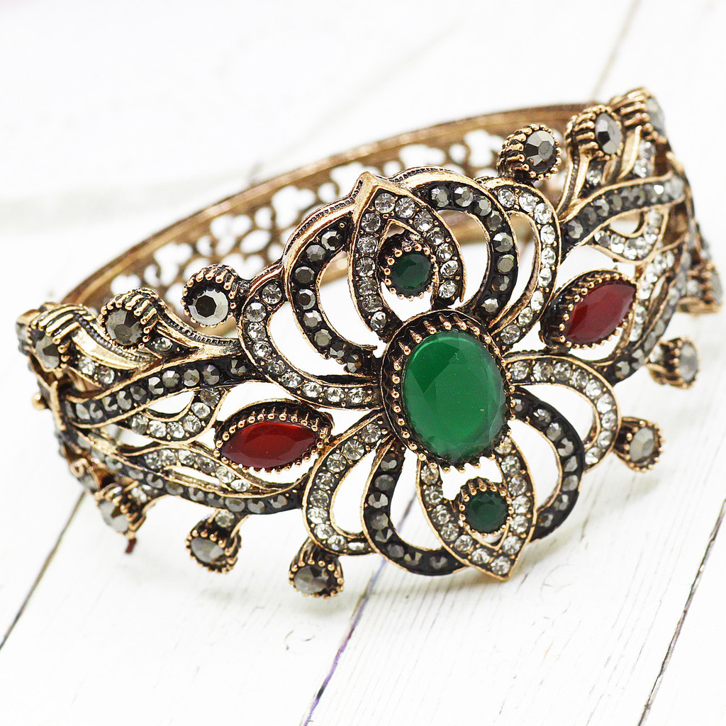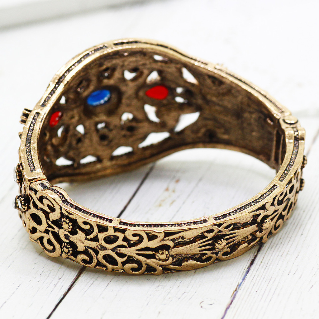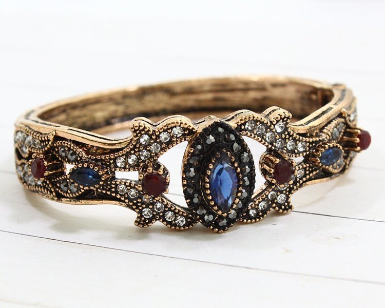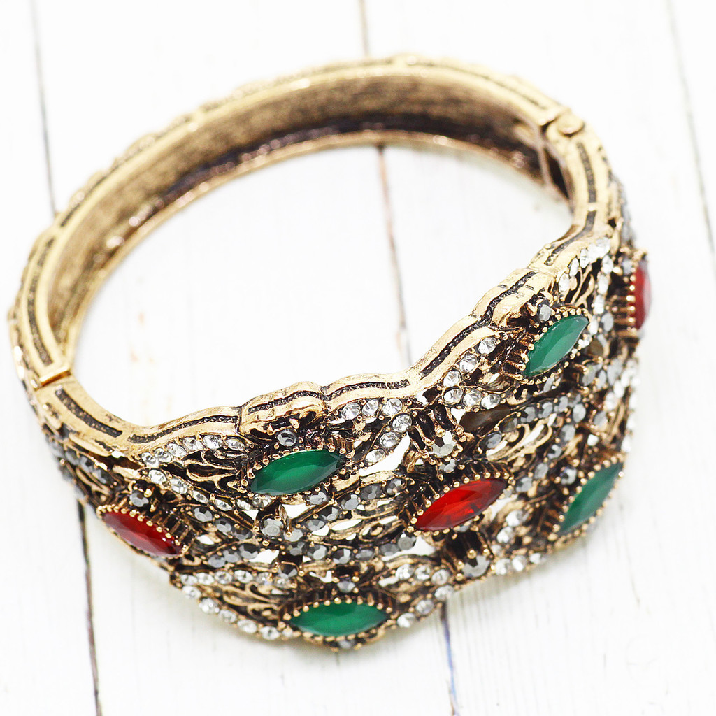 Красивый браслет восточного стиля  из специального гипоаллергенного ювелирного сплава,который покрыт золотом или устойчивым родиевым покрытием, предотвращающим раздражение кожных покровов..
