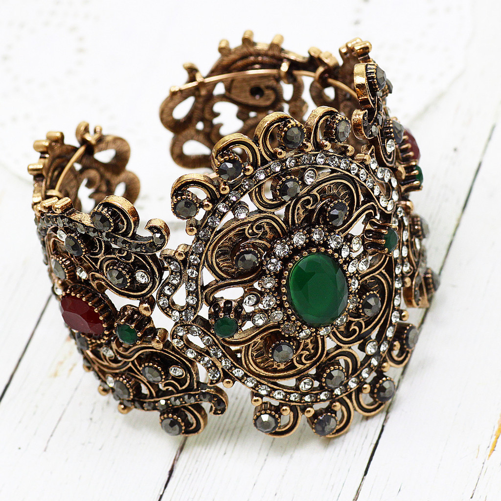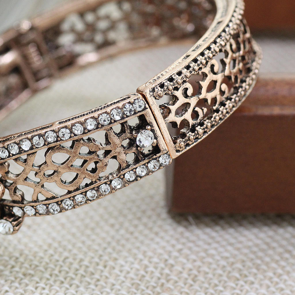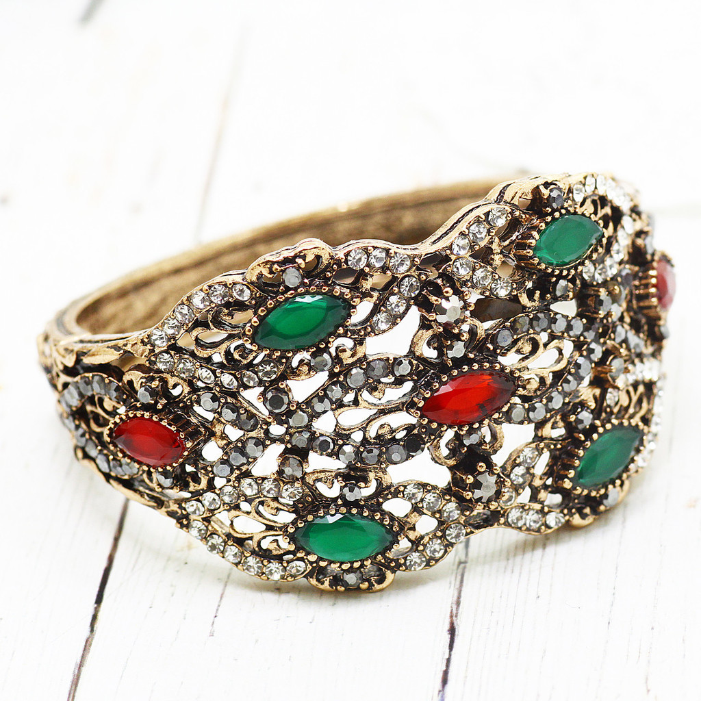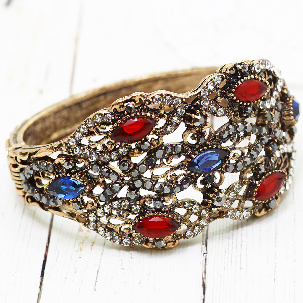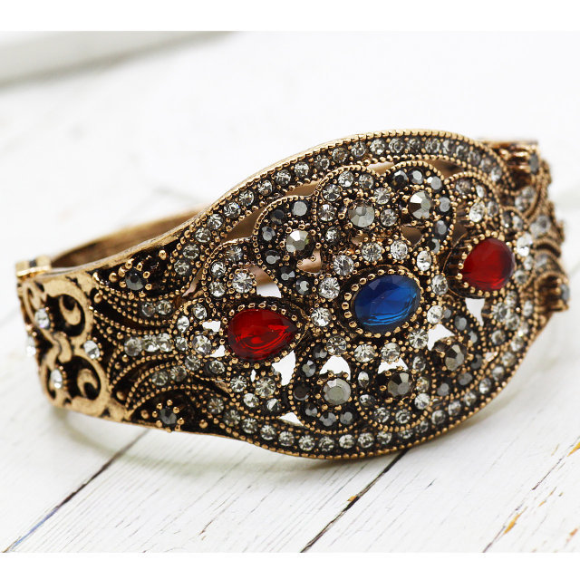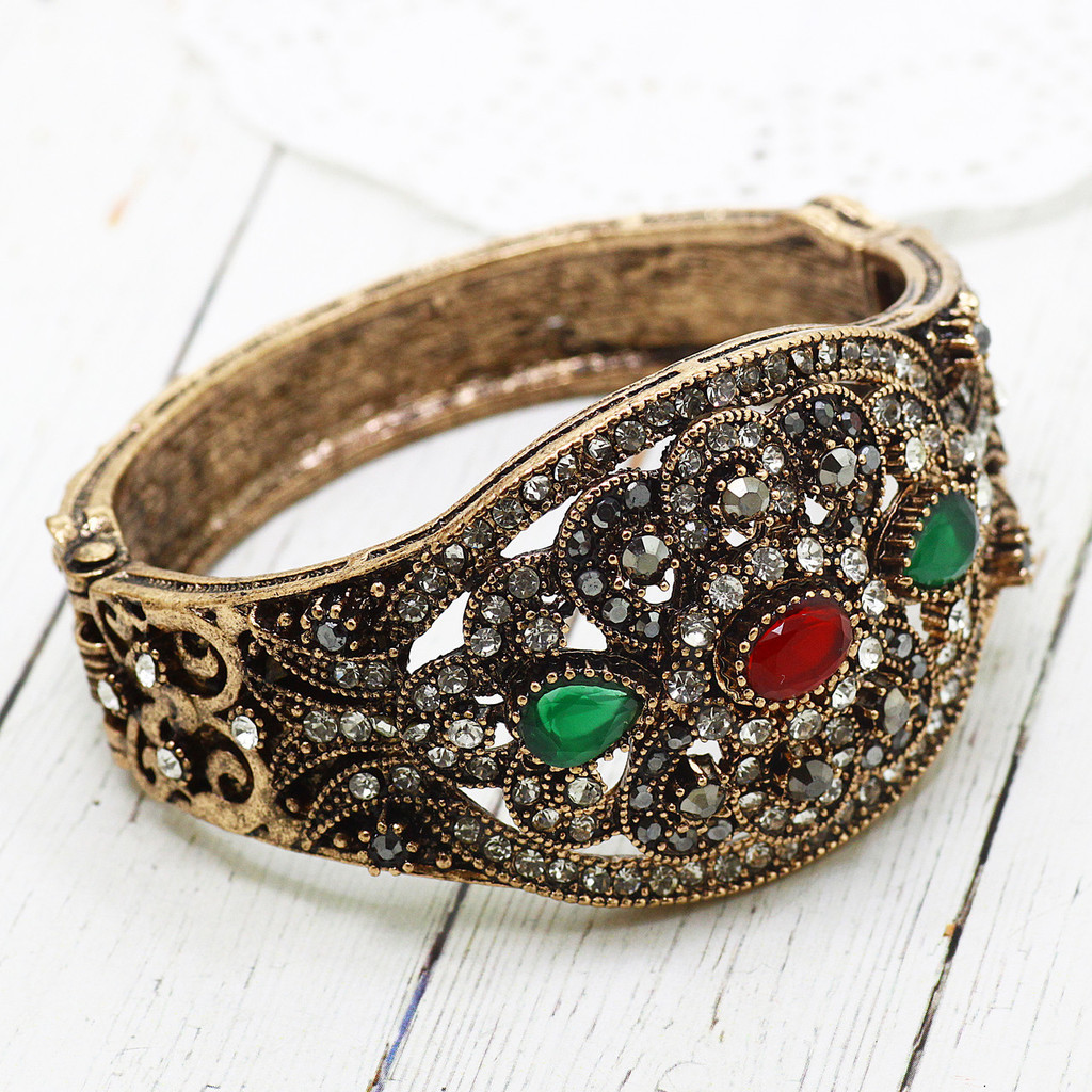 Красивый браслет восточного стиля  из специального гипоаллергенного ювелирного сплава,который покрыт золотом или устойчивым родиевым покрытием, предотвращающим раздражение кожных покровов..