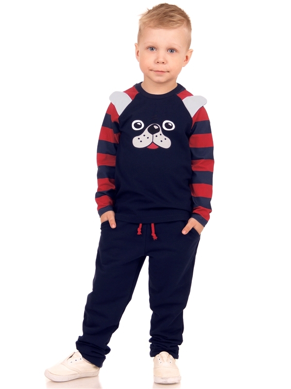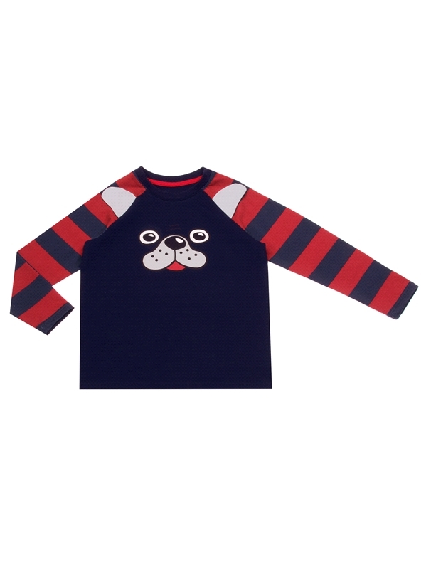 Состав: кулир с лайкрой / хлопок 92% + лайкра 8%. Лонгслив для мальчика выполнен из тонкого хлопкового полотна с лайкрой. Изделие с длинными рукавами-реглан, украшено ярким принтом и нашивными элемент... Показать описаниеами имитирующими мордочку собачки. Отличный вариант на каждый день! Уход: только машинная стирка (руками не стирать!) при температуре 40 градусов, без предварительного замачивания. Изделия с печатью и декором перед стиркой необходимо вывернуть на изнаночную сторону.