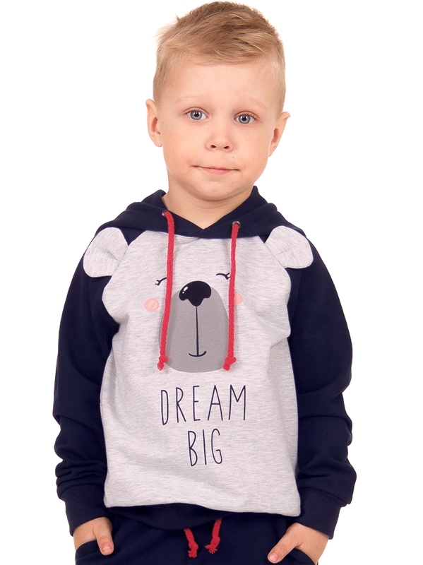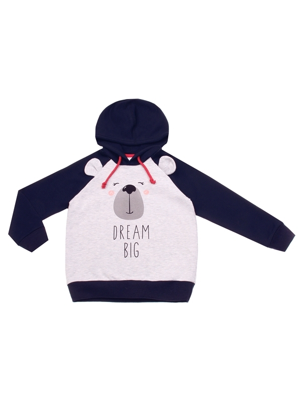 Состав: футер / хлопок 68% + ПЭ 27% + лайкра 5%. Стильное худи для мальчика из теплого хлопкового полотна с лайкрой. Изделие с длинными рукавами на манжетах и капюшоном, украшено принтом и нашивными э... Показать описаниелементами имитирующими мордочку медведя. Отличный вариант на каждый день! Уход: только машинная стирка (руками не стирать!) при температуре 40 градусов, без предварительного замачивания. Изделия с печатью и декором перед стиркой необходимо вывернуть на изнаночную сторону.