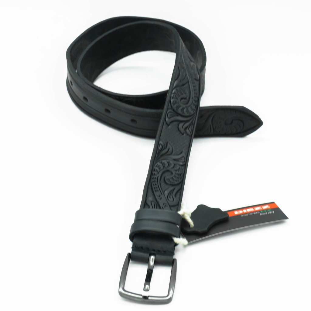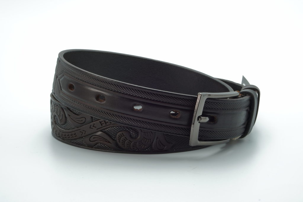 FP-h-0074 Детско-подростковый брючный ремень черного цвета из натуральной кожи, вида флотер с рисунком нанесенным по средствам горячего тиснения. Простота и практичность в сочетании с неоднородной тек... Показать описаниестурой ремня, не оставят равнодушными ни взрослых, ни детей. Натуральная краска из природных ингредиентов. Фурнитура (пряжка) может незначительно отличаться от представленной по форме. Регулируемый размер (винт). Длина ремня с пряжкой от 80 до 100 см.