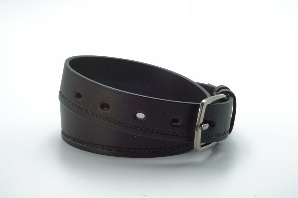 FP-k-0050 Брючный детско-подростковый ремень коричневого цвета из натуральной кожи-флотер. Данная линейка ремней сделана по особым технологиям, которые позволяют получить особую текстуры кожи, придава... Показать описаниея ремню более изящный вид. Особая обработка и тиснение кожи, позволяет создавать необычные узоры, которые не потеряют форму со временем. Натуральная краска из природных ингредиентов. Фурнитура (пряжка) может незначительно отличаться от представленной по форме. Регулировка размера с помощью винта. Длина ремня с пряжкой от 80 до 100 см.