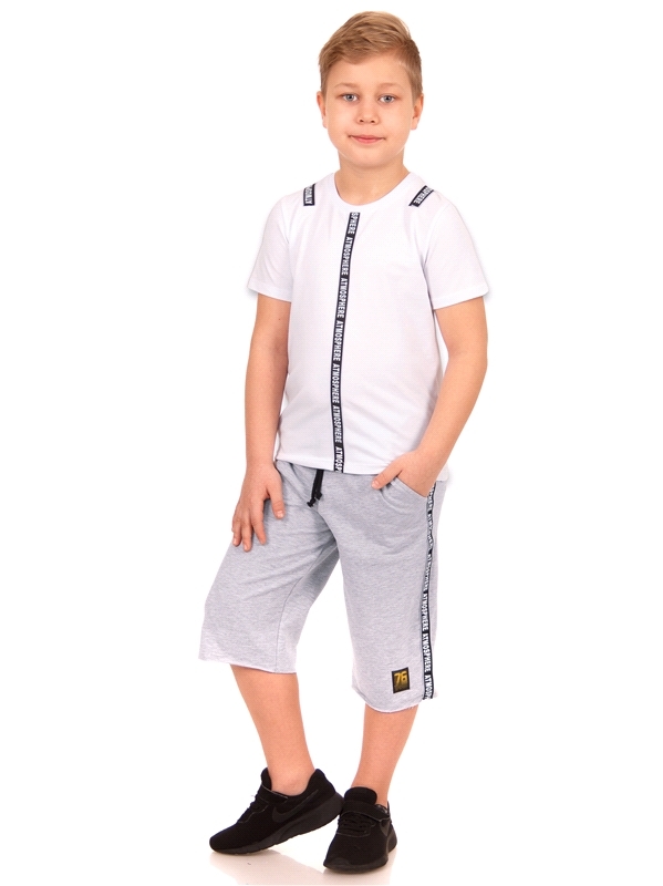 Состав: кулир, футер / хлопок 92% + лайкра 8%, хлопок 68% + ПЭ 27% + лайкра 5%. Комплект для мальчика из футболки и бридж. Футболка декорирована дизайнерским принтом, выполнена из легкого хлопкового п... Показать описаниеолотна. Бриджи на эластичном поясе со шнурком и карманами, украшены дизайнерской печатью, выполнены из теплого хлопкового полотна. Уход: только машинная стирка (руками не стирать!) при температуре 40 градусов, без предварительного замачивания. Изделия с печатью и декором перед стиркой необходимо вывернуть на изнаночную сторону.