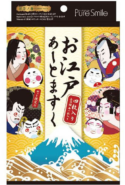 040491 "PURE SMILE" "Art Mask" Набор концентрированных увлажняющих масок для лица с экстрактом зеленого чая, с коллагеном, гиалуроновой кислотой и витамином Е, с рисунком (самурай, гейша, японская принцесса, ронин), 27 мл.*4 шт., 1/100Вопросы по товару