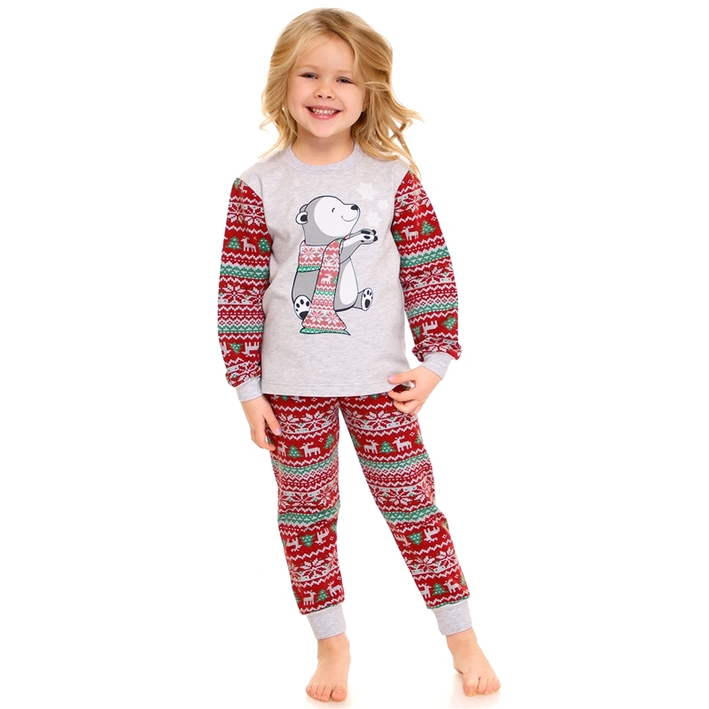 Состав: футер / хлопок 68% + ПЭ 27% + лайкра 5%. Детская пижама выполнена из теплого хлопкового полотна с лайкрой. Джемпер с длинными рукавами, украшен дизайнерским принтом. Брюки на удобном эластично... Показать описанием поясе. Отличный вариант для сна и отдыха! Уход: только машинная стирка (руками не стирать!) при температуре 40 градусов, без предварительного замачивания. Изделия с печатью и декором перед стиркой необходимо вывернуть на изнаночную сторону.