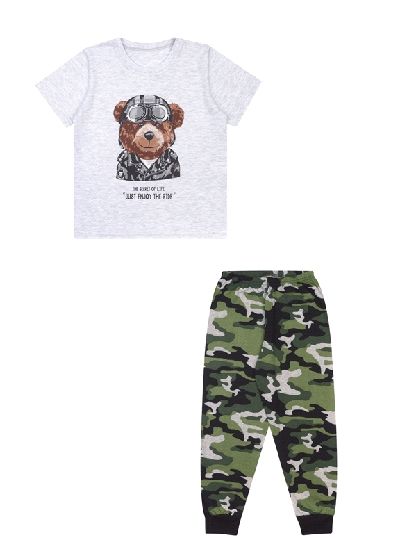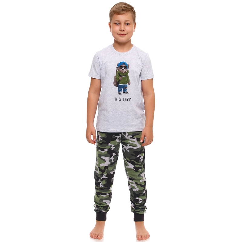 Состав: кулир / хлопок 100%, хлопок 70% + ПЭ 30%. Детская пижама выполнена из тонкого хлопкового полотна. Футболка украшена стильным принтом. Брюки на удобном эластичном поясе. Отличный вариант для сн... Показать описаниеа и отдыха! Уход: только машинная стирка (руками не стирать!) при температуре 40 градусов, без предварительного замачивания. Изделия с печатью и декором перед стиркой необходимо вывернуть на изнаночную сторону.