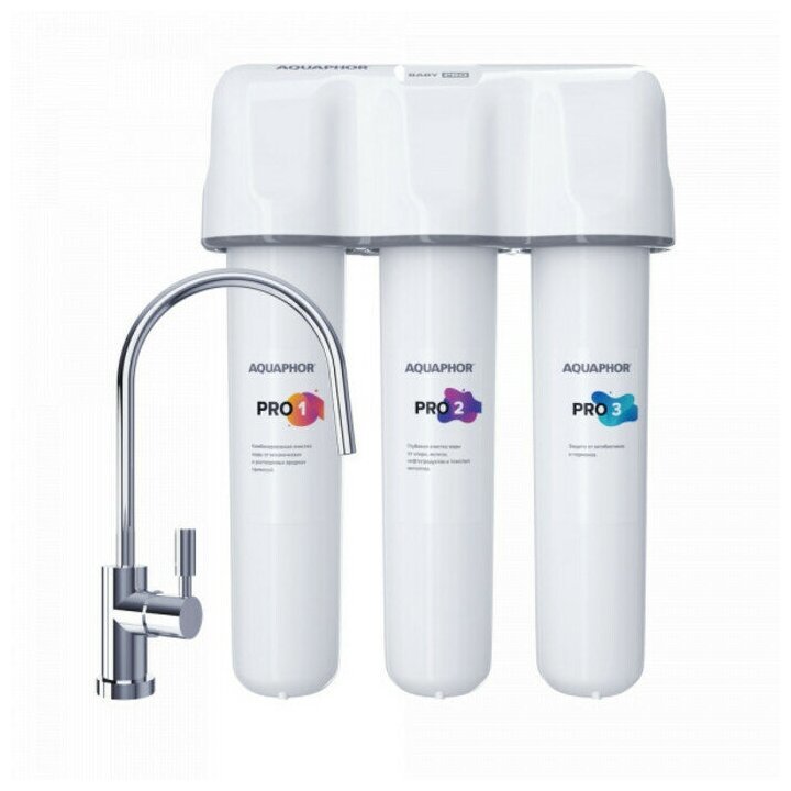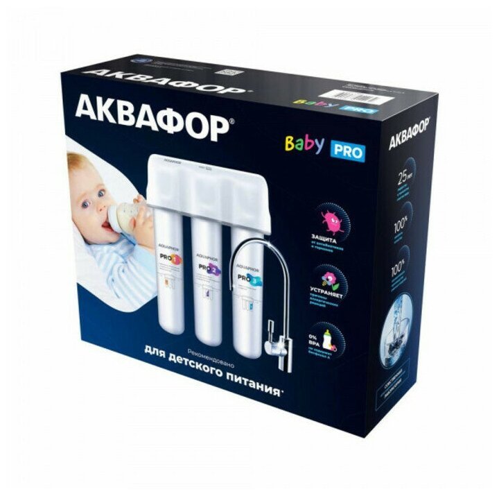 Cистема предназначена для глубокой очистки воды от техногенных и антропогенных загрязнений. Удаляет активный хлор, тяжелые металлы, железо (Fe2+), марганец, органические соединения, а также антибиотик... Показать описаниеи, гормоны, радионуклиды и свободные радикалы даже в сильно загрязненной воде. Присутствие фармацевтических препаратов в питьевой воде уже признано ВОЗ новым глобальным вызовом. В системе Baby Pro абсолютная защита от следовых количеств обезболивающих, антибиотиков, гормонов и других химических загрязнений обеспечивается сочетанием запатентованных технологий АКВАФОР и уникальными сорбционными средами. Фильтр для воды АКВАФОР Baby PRO эффективно удаляет из водопроводной воды антибиотики и гормоны. Это первый сорбционный водоочиститель, который показал отличные результаты в научных исследованиях по удалению антибиотиков и гормонов из питьевой воды. Система Аквафор Baby Pro была протестирована на способность удалять остаточные количества фармпрепаратов на примере антибиотика Левомицетина и стероидного гормона Эстрона с результатом фильтрации 99,9% и 99.8% соответственно. Многоступенчатая сорбционная фильтрация Baby Pro включает инновационный модуль предочистки 2 в 1 с увеличенным ресурсом. Система оснащена новым коллектором с дополнительным уровнем безопасности. Модель Baby Pro cохраняет исходный минеральный состав воды.
