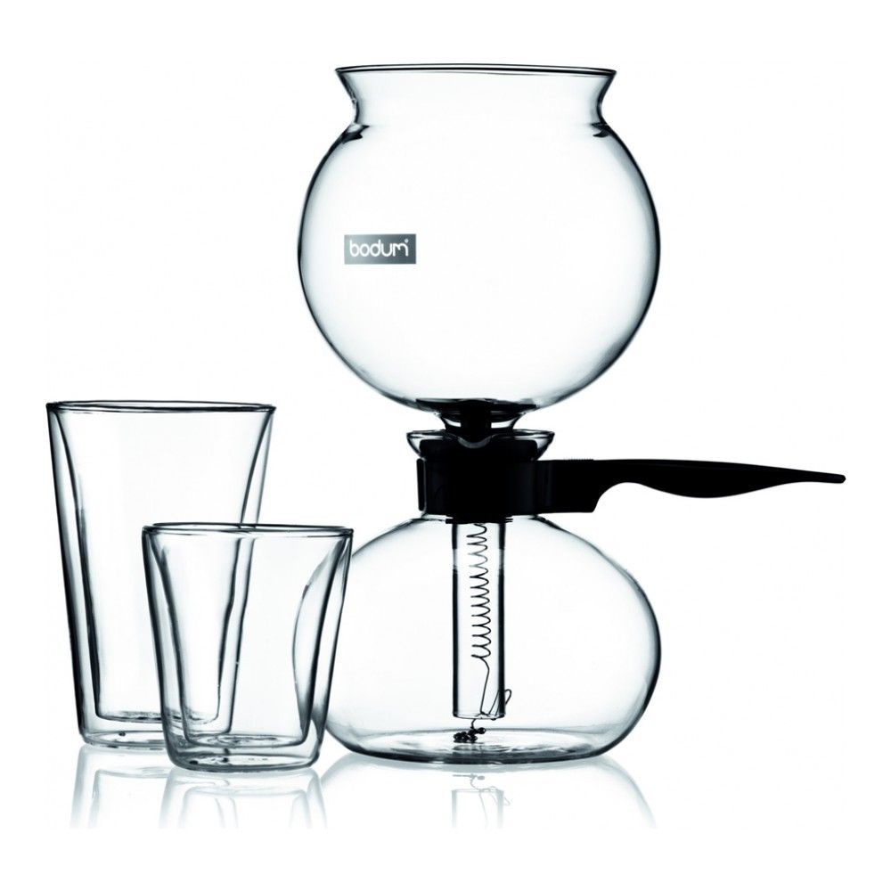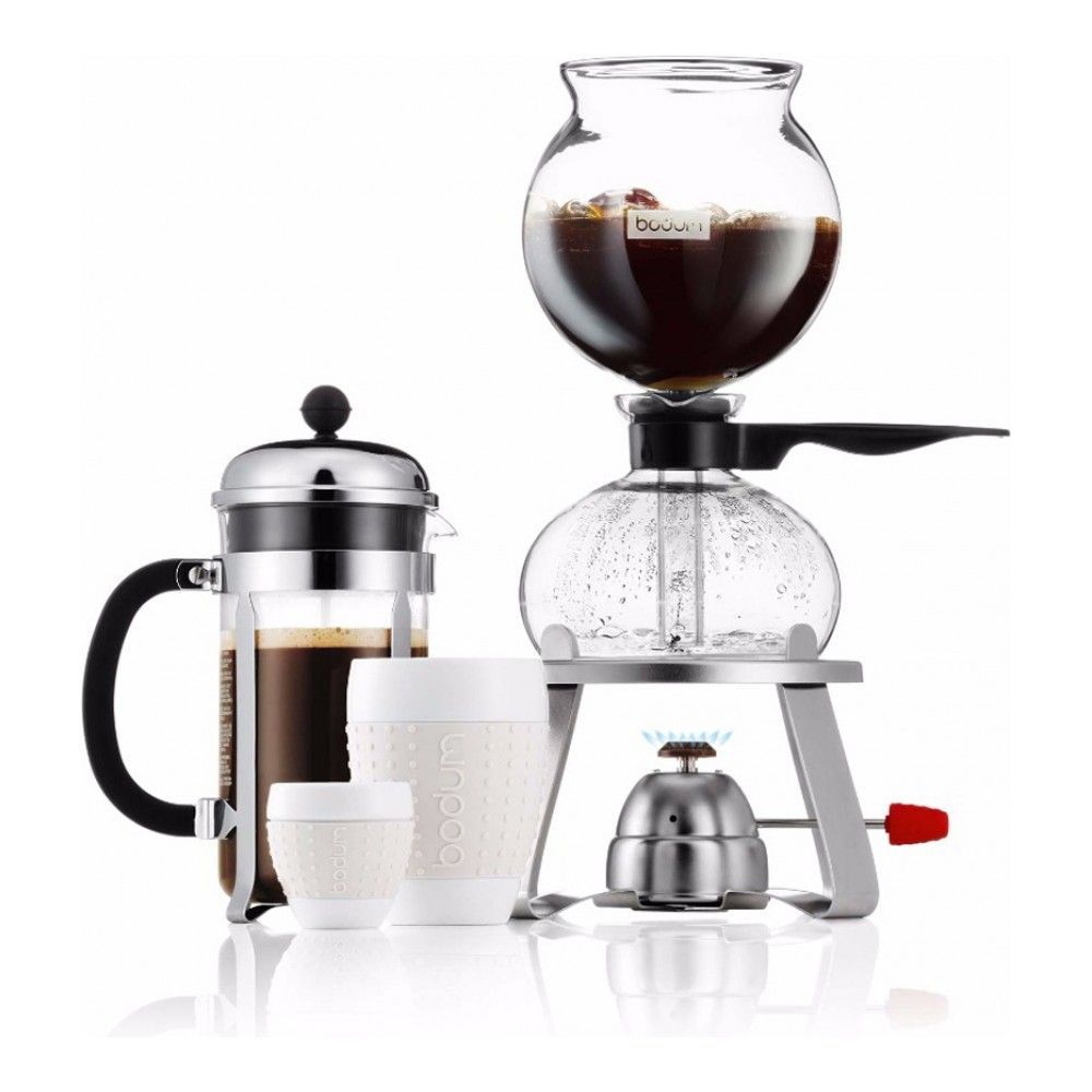 Цвет: пробковый; объем: 1.00 л; габариты: 20x14x40 см; вес: 2.21 кг; материал: пробка, коррозионностойкая сталь, стекло; серия: Siphon. Легендарная кофеварка Mocca Siphon - первый продукт BODUM, созда... Показать описаниенный основателем бренда Питером Бодумом в 1956 году. Сегодня BODUM представляет обновленную версию этой кофеварки. Она работает без электричества, без проводов, для приготовления кофе потребуется только самый обычный газ для зажигалок. Использовать такую кофеварку можно и дома, и в дачной беседке, и на пикнике на улице. Вы не зависите от розеток, кофеварка готова к работе в любом месте и в любое время. Расстояние от поверхности, на которой стоит собранная кофеварка, до дна колбы - 8 см. Приготовление хорошего кофе - это наука и данная кофеварка, выглядящая как прибор из научной лаборатории, отличная тому иллюстрация. Система работы кофеварки такова: горелка нагревает воду, находящуюся в нижней шарообразной емкости. Нагреваясь, вода поднимается в верхнюю емкость, в которую необходимо засыпать молотый кофе. Здесь, наверху, произойдет заваривание. Спустя совсем короткое время готовый кофе вновь опустится в нижнюю емкость. После того, как кофе заварился, горелку можно оставить включенной, она будет подогревать напиток. Mocca Siphon - это наука, магия и театральное представление появления на свет кофе, которое будет готово начаться, как только вы того пожелаете. Это девайс для гурманов, эстетов и ценителей непреходящих ценностей. Особенности кофеварки Mocca Siphon. * Кофе, приготовленный в вакуумной кофеварке, получается более насыщенным, ароматным и в то же время мягким, чем при других способах приготовления, благодаря тому, что этот способ высвобождает эфирные масла, содержащиеся в кофе;. * Подходит для использования в помещении и на улице;. * Емкость для кофе сделана из термостойкого боросиликатного стекла, вы можете видеть как происходит процесс заваривания от начала и до конца;. * Удобная ручка с накладкой из натуральной пробки;. * Все поверхности кофеварки легко очищать;. * Произведено в Европе;. * В России вакуумная кофеварка Mocca Siphon доступна только в магазине DOMOS.