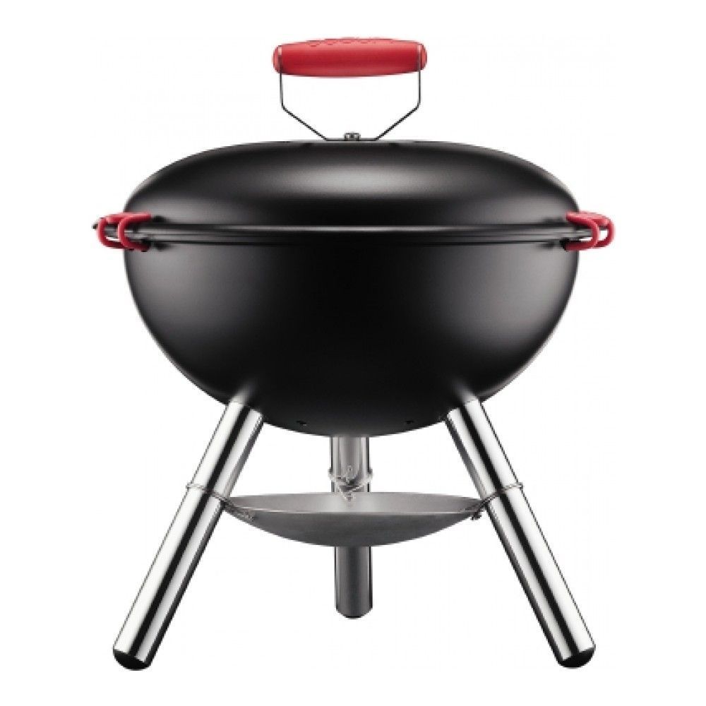 Цвет: черный; габариты: 38x38x45.5 см; вес: 3.76 кг; материал: силикон, пластик, коррозионностойкая сталь; серия: Fyrkat. Гриль Fyrkat поставляется в Россию ограниченным тиражом и продается эксклюзивн... Показать описаниео в магазине DOMOS. Это красивый и удобный переносной гриль, который легко собирается и разбирается, не занимает много места при перевозке в багажнике и хранении. Компактные размеры позволяют разместить гриль прямо на столе в саду или на балконе квартиры. Диаметр 38 см подходит для приготовления четырех порций мяса за один раз. Корпус и ножки гриля изготовлены из стали. Решетка прочная и толстая – не обгорает, легко очищается и прослужит долго. На крышке предусмотрены специальные клипсы-фикаторы, благодаря которым, вы можете, взявшись за ручку переносить гриль на любые расстояния. Стальная ручка на крышке покрыта силиконом и не нагревается. Небольшой вес (всего 3,37 кг) облегчает переноску. Достоинства и преимущества. * Эксклюзив от интернет-магазина DOMOS;. * Компактный – подходит для использования на столе на веранде, балконе или в саду;. * Крышка обеспечивает безопасность от искр;. * Достаточно большой диаметр, чтобы приготовить 4 порции мяса;. * Решетка гриля легко снимается, вы можете ее помыть в раковине или посудомоечной машине;. * Ручка на крышке имеет силиконовое покрытие и не нагревается;. * Силиконовые зажимы фиксируют крышку, это удобно при переноске в собранном виде;. * Произведено в Португалии.
