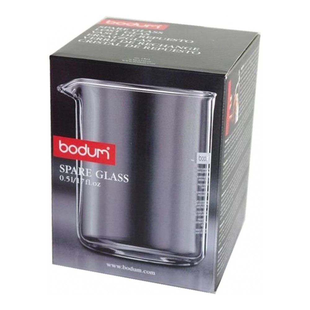 Цвет: прозрачный; объем: 0.50 л; габариты: 10.5x10.5x14 см; вес: 0.20 кг; материал: стекло; серия: Spare Parts. Колба для кофейников вместимостью 0.5 л. изготовлена из прозрачного боросиликатного стек... Показать описаниела. Выдерживает высокие температуры, подходит для посудомоечных машин и не мутнеет при многократном мытье. Диаметр корпуса колбы - 9.5 см, диаметр по верхнему краю - 9.7 см, высота - 12.5 см. Колба подходит для следующих моделей френч-прессов Bodum:. * Chambord, у которых носик предусмотрен на колбе, а не в крышке;. * Eileen;. * Kenya;. * Crema.