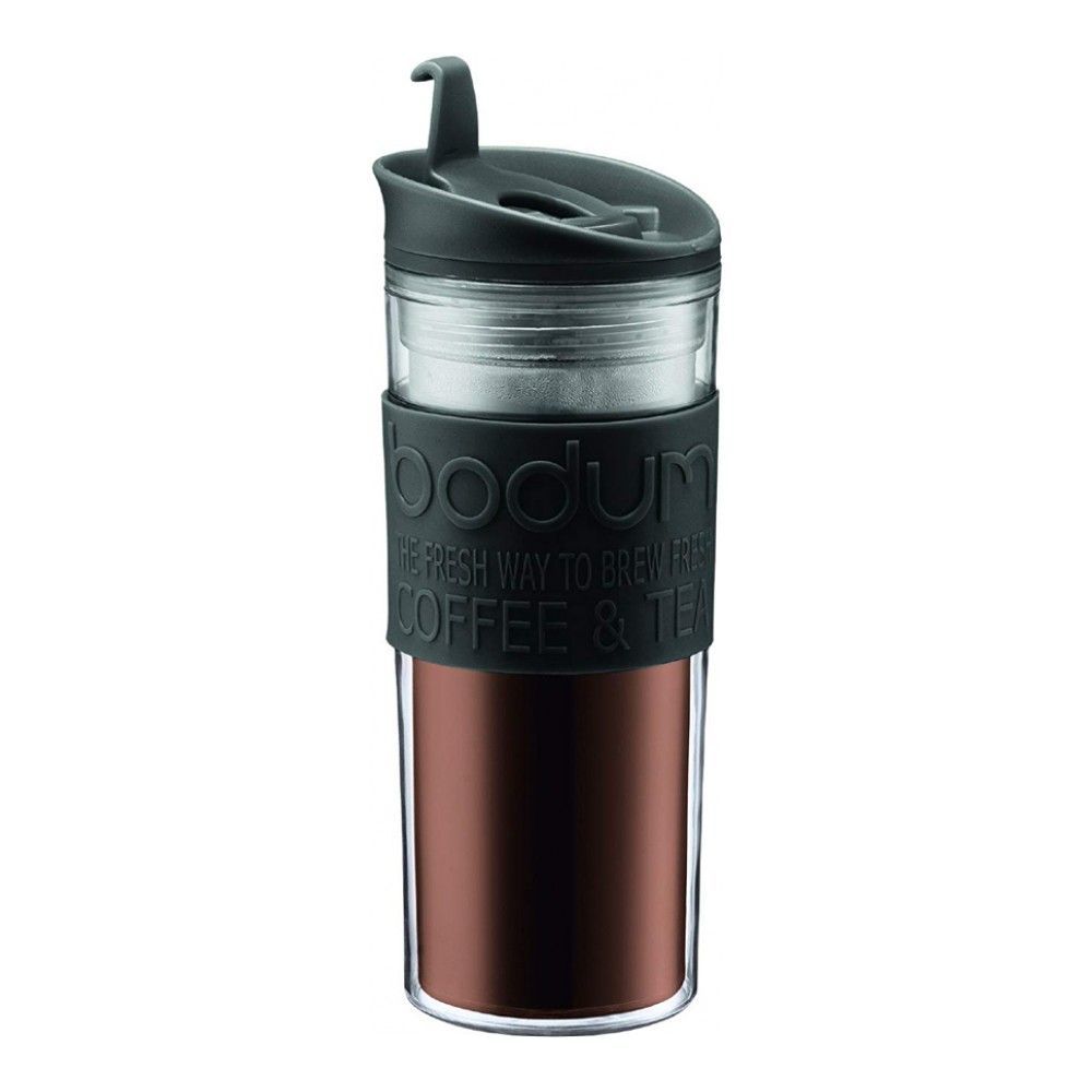 Цвет: черный; объем: 0.45 л; габариты: 8х8х20.8 см; вес: 0.28 кг; материал: силикон, резина, пластик; серия: travel. Дорожная кружка не из тех предметов, без которых не прожить. Но раз начав ей пользо... Показать описаниеваться, от нее уже не отказаться. Почему бы не выпить кофе по дороге на работу? Почему бы не взять с собой прохладный лимонад на летнюю прогулку? Иметь такую кружку с собой в машине просто бесценно: она выручит вас не единожды. К такому удобству быстро привыкаешь!. Данная термокружка сделана из термостойкого пластика, это легкий предмет (в отличие от металлических термокружек). Пластиковые кружки не предназначены для долгого поддержания температуры напитков, но все же, благодаря двустенной конструкции и воздушной прослойке, кружка держит тепло (или прохладу) напитка около получаса. На поверхности кружки есть силиконовый ободок, функция которого - не дать кружке скользить в руке. Клапан на крышке легко защелкивается и также легко открывается. Итак, вот основные плюсы этой кружки:. * легкая;. * сохраняет температуру напитков в течение получаса;. * удобный клапан;. * силиконовый ободок, предотвращающий скольжение;. * элегантный дизайн. Внимание! Закрытая крышка не обеспечивает полной герметичности. Наполненная кружка не предназначена для хранения или переноски в горизонтальном положении.