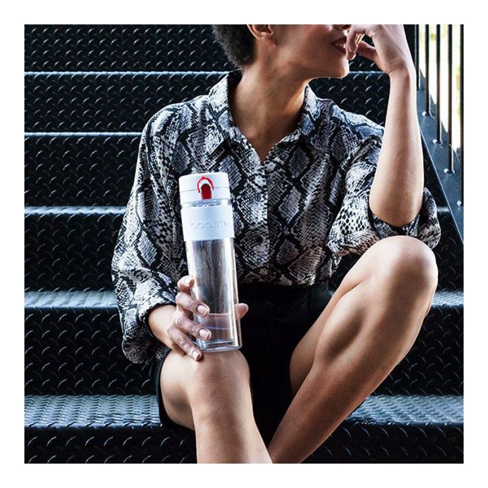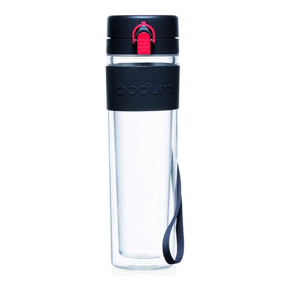 Цвет: черный; объем: 0.50 л; габариты: 7.1x8.9x25.3 см; вес: 0.26 кг; материал: пластик, силикон; серия: Bistro. Бутылка для воды Bistro изготовлена из высококачественного пластика TRITAN – современно... Показать описаниего инновационного материала. Швейцарская компания Bodum всегда стремиться использовать новые актуальные материалы и технологии для производства своих продуктов. TRITAN она выбрала из-за его практичности в использовании и экологичности. Он не содержит пластификаторов и бисфенола-А. Это легкий, небьющийся и идеально прозрачный материал, который пользуется с каждым днем все большей популярностью среди потребителей во всем мире. Бутылка для воды из этого материала весит всего 260 г. и при этом имеет двойные стенки. Двойные стенки позволяют дольше сохранять температуру напитка холодным либо горячим, оставляя внешнюю стенку всегда прохладной, даже если в бутылку налит кипяток. Бутылка имеет надежную герметичную крышку. Вы можете положить ее к себе с сумку, не опасаясь, что вода протечет и испортит ваши вещи. Достоинства и преимущества. * Вместимость 450 мл.;. * Изготовлена из высококачественного пластика TRITAN, не содержит BPA;. * Легкая, удобно брать с собой в дорогу;. * Прозрачные стенки, можно увидеть уровень жидкости;. * Двойные стенки дольше сохраняют температуру напитка (холодным или горячим);. * Герметичная крышка;. * Произведено в Европе.