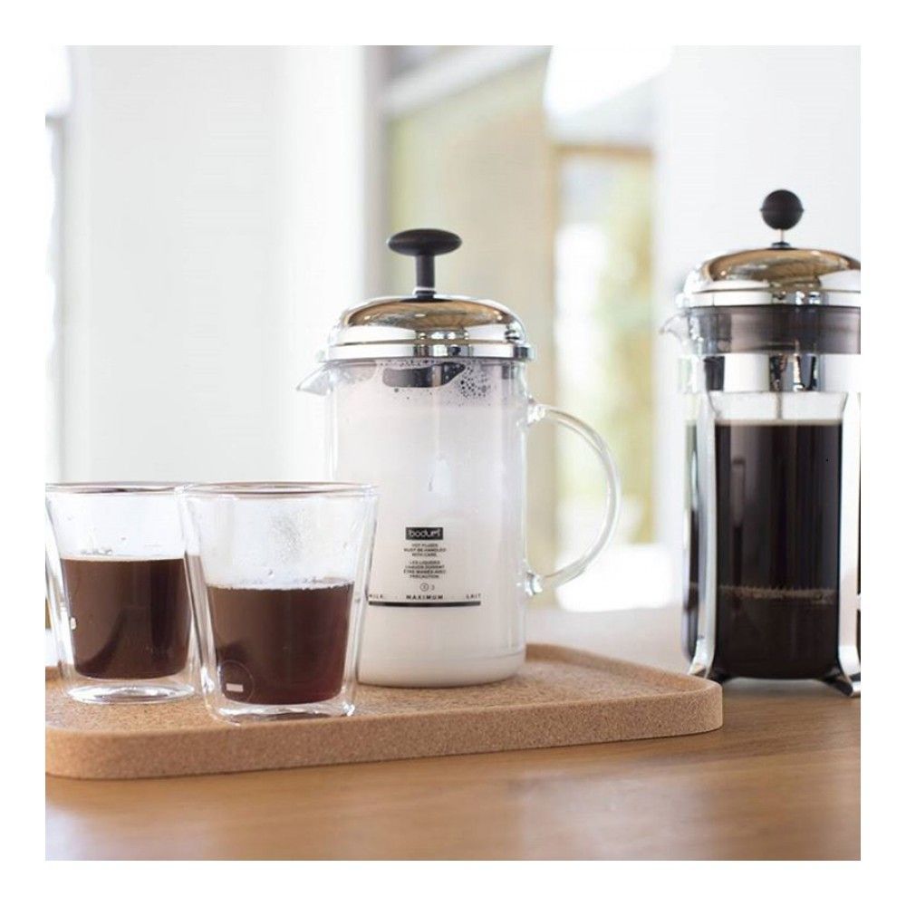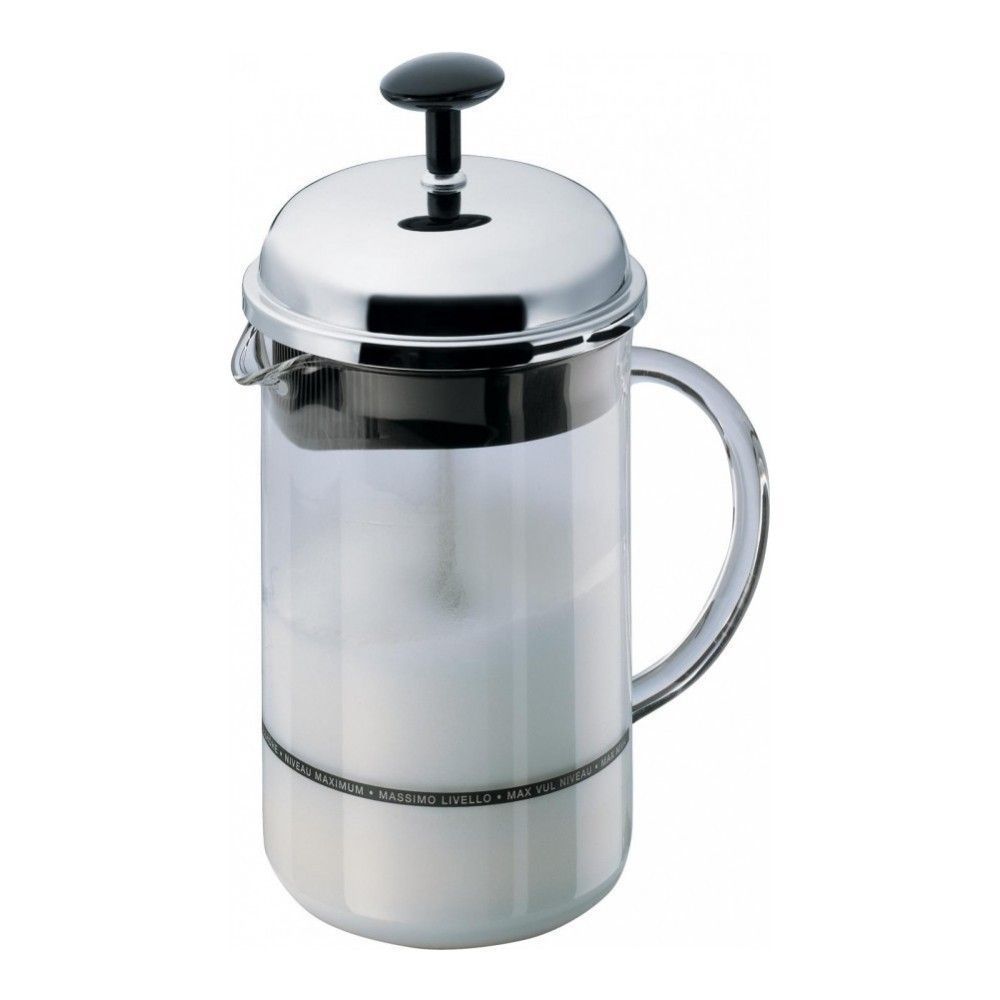 Цвет: хром; объем: 0.25 л; габариты: 15.2x11.1x22 см; вес: 0.41 кг; материал: пластик, коррозионностойкая сталь, стекло; серия: Chambord. Любите капучино, любите латте? Тогда этот взбиватель станет дл... Показать описаниея вас находкой! В нем вы можете приготовить воздушную молочную пенку за несколько минут. Вот что для этого нужно сделать:. * наполните взбиватель молоком не больше чем на одну треть (обратите внимание: холодное молоко взбивается легче, чем теплое);. * закройте взбиватель крышкой;. * начните двигать рукоятку поршня вверх-вниз;. * продолжайте в течение 10-15 секунд;. * молочная пена готова. Колба взбивателя сделана из легкого, но прочного боросиликатного стекла. Все части взбивателя можно мыть в посудомоечной машине. Объем взбивателя - 250 мл - позволит вам приготовить пенку для двух-трех чашек кофе.