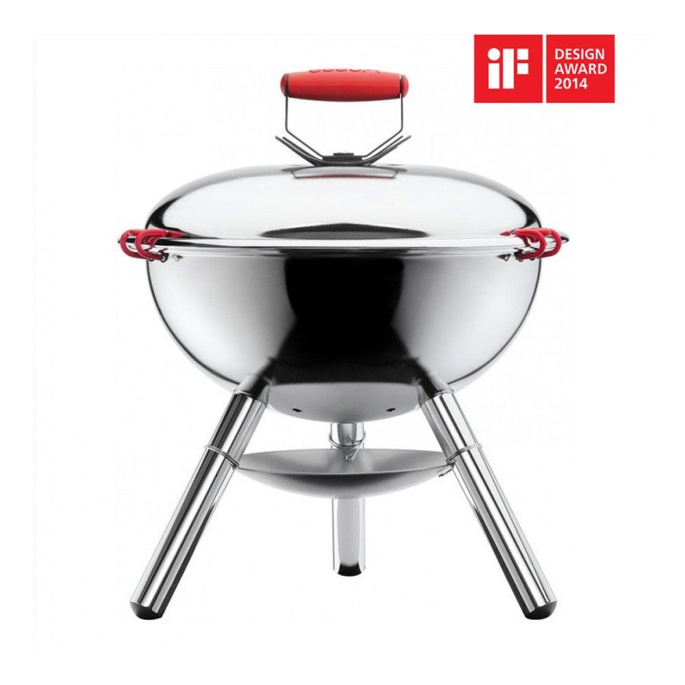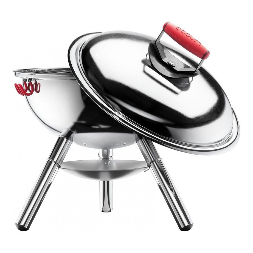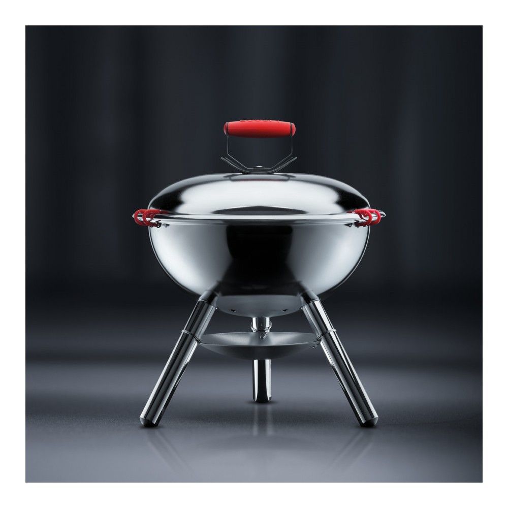 Цвет: хром; габариты: 38х38х45.5 см; вес: 3.37 кг; материал: силикон, пластик, коррозионностойкая сталь; серия: Fyrkat. Гриль Fyrkat поставляется в Россию ограниченным тиражом и продается эксклюзивно ... Показать описаниев магазине DOMOS. Это красивый и удобный переносной гриль, который легко собирается и разбирается, не занимает много места при перевозке в багажнике и хранении. Компактные размеры позволяют разместить гриль прямо на столе в саду или на балконе квартиры. Диаметр 38 см подходит для приготовления четырех порций мяса за один раз. Корпус и ножки гриля изготовлены из стали. Решетка прочная и толстая – не обгорает, легко очищается и прослужит долго. На крышке предусмотрены специальные клипсы-фикаторы, благодаря которым, вы можете, взявшись за ручку переносить гриль на любые расстояния. Стальная ручка на крышке покрыта силиконом и не нагревается. Небольшой вес (всего 3,37 кг) облегчает переноску. Достоинства и преимущества. * Эксклюзив от интернет-магазина DOMOS;. * Компактный – подходит для использования на столе на веранде, балконе или в саду;. * Крышка обеспечивает безопасность от искр;. * Достаточно большой диаметр, чтобы приготовить 4 порции мяса;. * Решетка гриля легко снимается, вы можете ее помыть в раковине или посудомоечной машине;. * Ручка на крышке имеет силиконовое покрытие и не нагревается;. * Силиконовые зажимы фиксируют крышку, это удобно при переноске в собранном виде;. * Произведено в Португалии.