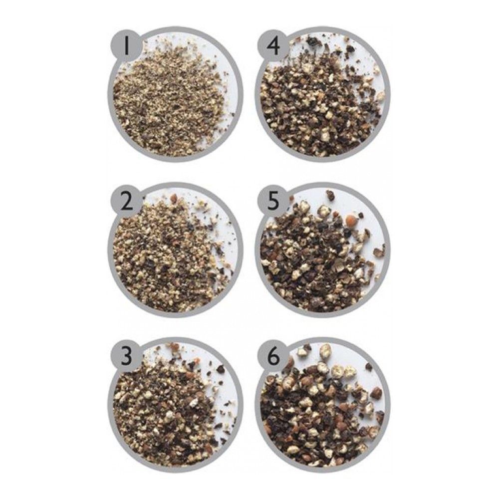 Цвет: хром; габариты: 5.5х5.5х15.4 см; вес: 0.26 кг; материал: пластик, коррозионностойкая сталь, керамика; серия: Horsham. Холодный матовый металлик и идеально прозрачный, сверкающий на свету акрил -... Показать описание стильное сочетание, создающее стиль серебристой коллекции Horsham. Такой дизайн не перестанет быть модным со временем, это классика, которая будет украшением вашей кухне ни один год. Отличительная черта серии Horsham - это инвертивная конструкция корпуса: механизм помола расположен сверху, а это означает, что на поверхность полки или стола не будут просыпаться крупинки специй, как это бывает с мельницами, имеющими ножи у основания. Мельницы Horsham имеют удобную пятиступенчатую систему регулировки помола. Индикатор, находящийся в верхней части мельницы, указывает, на какой размер частиц настроена мельница в данный момент. Механизм мельниц Horsham создан с мастерством с использованием фирменных технологий бренда. Ножи, измельчающие специи никогда не затупятся: Cole & Mason дает на них пожизненную гарантию. Мельницы Cole & Mason Horsham поставляются в Россию ограниченным тиражом и продаются эксклюзивно в магазине DOMOS. Достоинства и преимущества. * Дизайн, который не устареет со временем;. * Механизм помола высочайшего качества, пожизненная гарантия на механизм;. * Отсек для специй из легко моющегося современного материала — акрила;. * Прозрачные стенки позволяют следить за количеством специй внутри мельницы;. * Легкая система наполнения мельницы - просто отверните медную часть и откройте мельницу;. * 5 степеней помола от крупного до мелкого с удобным индикатором помола.