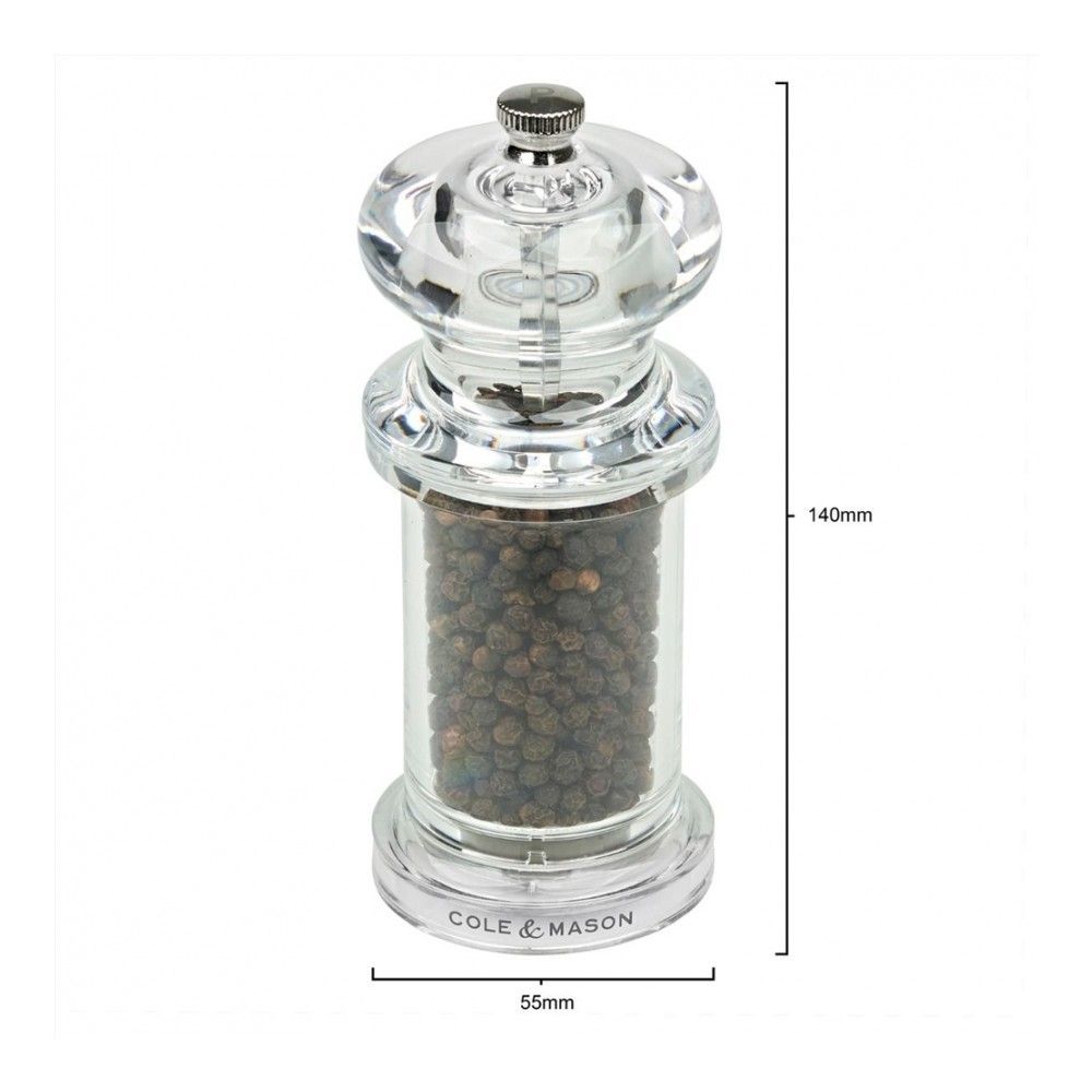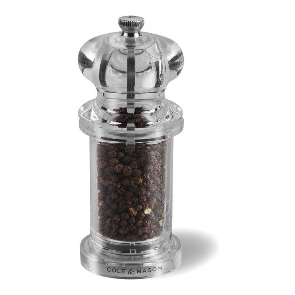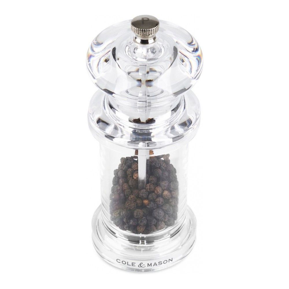 Цвет: прозрачный; габариты: 5х5х13 см; вес: 0.27 кг; материал: керамика, пластик, коррозионностойкая сталь; серия: Geometry. Серия мельниц для соли и перца Kempton Cole & Mason идеально подойдет с... Показать описаниеовременному интерьеру. Красивый прозрачный корпус из акрила и форма с приятно скругленными углами — фирменные черты серии. Такую мельницу приятно держать в руке, а прозрачность стенок позволит вам всегда знать, сколько перца и соли осталось внутри. Марка Cole & Mason получила известность благодаря необыкновенно высокому качеству механизмов помола. На них бренд дает пожизненную гарантию. Ножи мельниц не будут тупится со временем благодаря фирменному методу заточки Cole & Mason. Мельницы серии Kempton имеют функцию регулировки помола от крупных аппетитных крупинок до порошкообразной консистенции. В моделях предназначенных для соли использован керамический механизм помола лезвиями алмазной заточки. Такие лезвия аккуратно измельчает кристаллы соли, не превращая их в пыль. Модели предназначенные для помола перца имеют высококачественный стальной механизм. Мельницы Cole & Mason Kempton поставляются в Россию ограниченным тиражом и продаются эксклюзивно в магазине DOMOS. Достоинства и преимущества. * Корпус из легко моющегося современного материала — акрила;. * Прозрачные стенки позволяют следить за количеством специй внутри мельницы;. * Легкая система наполнения мельницы - просто отвинтите набалдашник наверху и откройте мельницу;. * Возможность регулировать помол от крупного до мелкого;. * Высокое качество измельчающего механизма. Пожизненная гарантия на механизм.