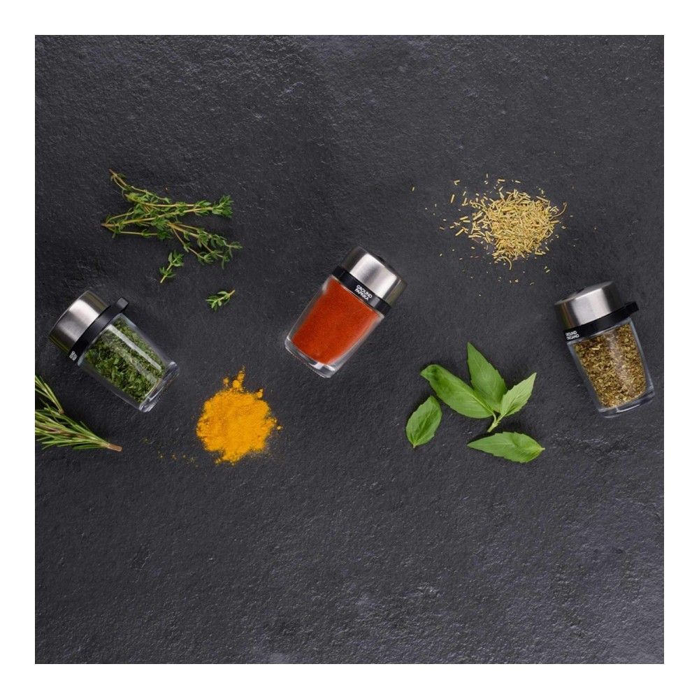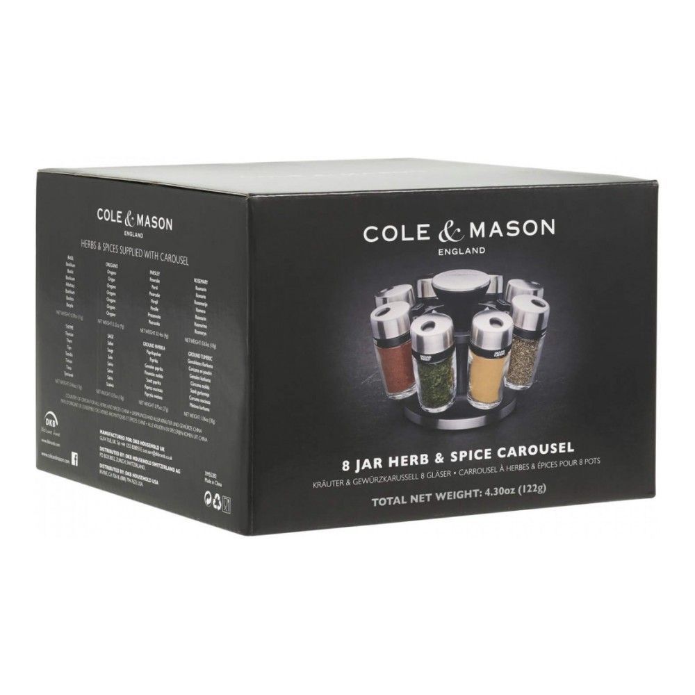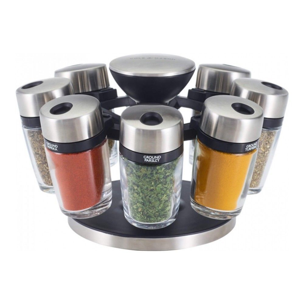 Цвет: черный; габариты: 21.3х21.3х14.6 см; вес: 1.50 кг; материал: пластик, коррозионностойкая сталь, стекло; серия: Hudson. Карусель – это слово из детства, оно дарит вам радостные воспоминания и выз... Показать описаниеывает улыбку на лице. Теперь у вас есть шанс поставить карусель на кухню и пользоваться ею каждый день. Только не удивляйтесь, конечно же, речь идет не о карусели из парка аттракционов, а об удобной подставке под специй, каждую из которых можно будет взять, лишь повернув карусель легким движением руки. Английская торговая марка Cole&Mason изобрела такую незаменимую вещь специально для вас, чтобы усовершенствовать легкость и быстроту приготовления ваших любимых блюд. Только представьте, вам срочно понадобились базилик и шафран, вы не бросаетесь к шкафу, чтобы судорожно перерывать массу пакетиков в поисках нужных приправ, а спокойно крутите подставку и достаете то, что вам нужно, ну, разве не замечательно?. Карусель Hudson это экономия вашего времени и нервов, что немаловажно на кухне, более того, форма карусели делает довольно объемное сооружение компактным, оставляя место на столе и другим полезным кухонным аксессуарам. Стоит добавить, что в стеклянных баночках специи будут храниться долго и не потеряют свой аромат, а сами баночки легко снимаются с подставки, потому что имеют форму песочных часов. В довершение ко всему, карусель имеет большое эстетическое значение. Эта стильная аккуратная конструкция выглядит очень современно и оригинально, а это подтверждает, что истинная хозяйка выбирает не только комфортные, но и изящные вещи для своего дома. Видео карусели со специями