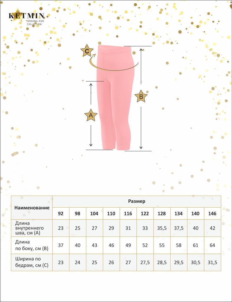 Описание товара Облегающие бриджи для девочки от бренда KETMIN. Мягкий хлопковый трикотаж с лайкрой высшего качества пенье, приятен на ощупь и удобен в носке, не деформируется после многократных стиро... Показать описаниек, не вытягивается и не пилингуется. Изделие долгое время выгладит как новые. Отлично подойдут для занятий танцами и физкультурой.