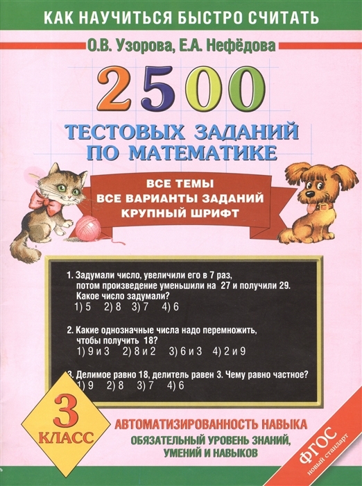 2500 тестовых заданий по математике 3 класс