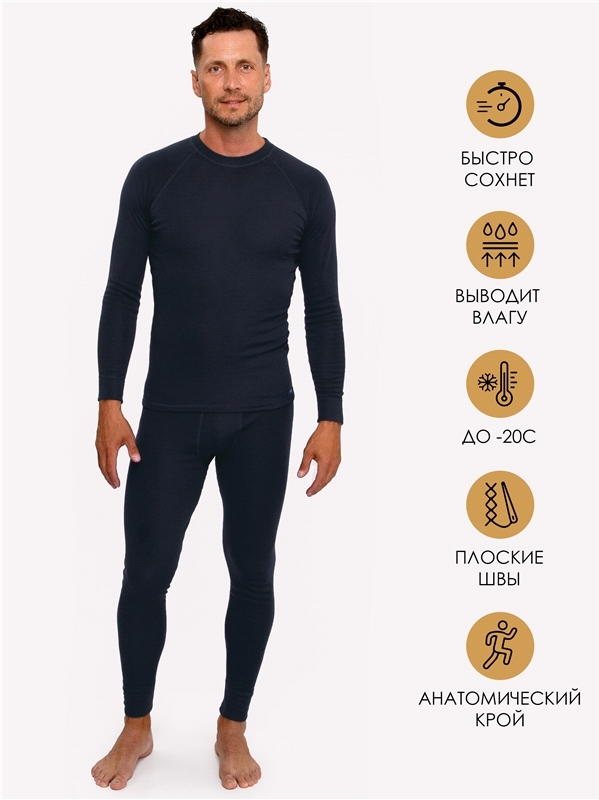 Состав: ластик / ПЭ 95% + вискоза 5%. Термокомплект из лонгслива и кальсон подходит для ежедневного использования в качестве нательного белья в холодную погоду до -20 градусов при средней и высокой фи... Показать описаниезической активности. Комплект выполнен из мягкого термополотна с микроначесом с изнаночной стороны. Плоские швы и эргономические лекала обеспечивают комфортное прилегание изделия. Сохраняет тепло и выводит влагу, позволяя коже оставаться сухой. Уход: машинная стирка при температуре до 30 градусов без предварительного замачивания. Обязательная предварительная стирка! При выборе размера необходимо иметь в виду, что термобелье предполагает плотное облегание тела, не стесняя движений, не оставляя сборок и складок, с минимальным запасом по длине. Только правильно подобранное по размеру термобелье эффективно выполняет свои терморегуляционные функции.