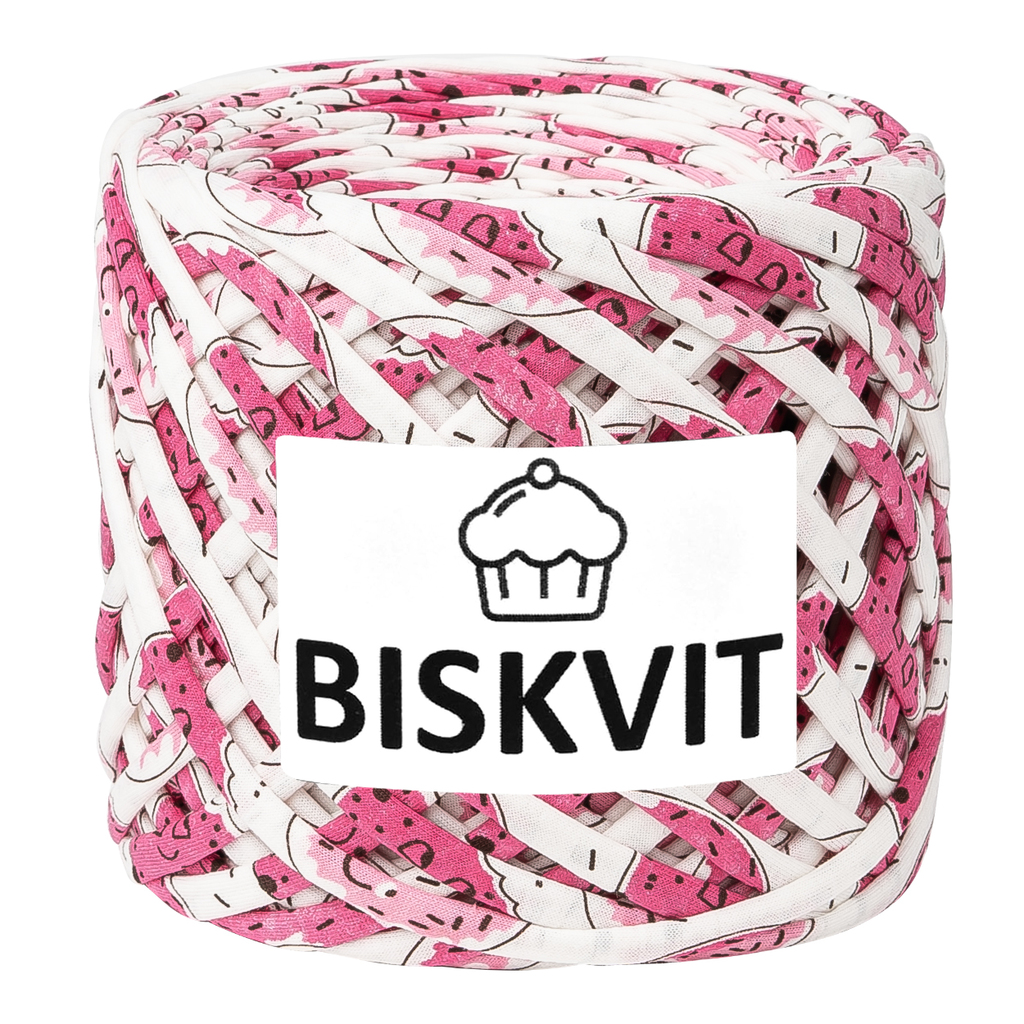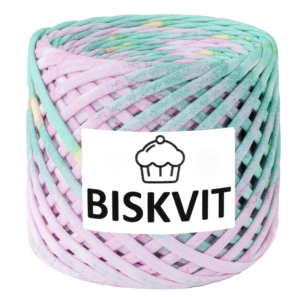 Моток Biskvit. Идеальной формы, одинаковое натяжение и ширина нити по всей длине. Мотается и вытягивается из ролика на специальном оборудовании. Ширина нити 7-9 мм, изделия отлично держат форму. Длина нити 100-110 метров. Вес 350-400 грамм в зависимости от цвета и принта. Обязательно посмотрите мастер-классы и обзоры на сайте Пряжи Бисквит в конце страницы. Вы обязательно захотите сотворить такую же красоту!