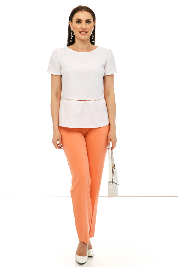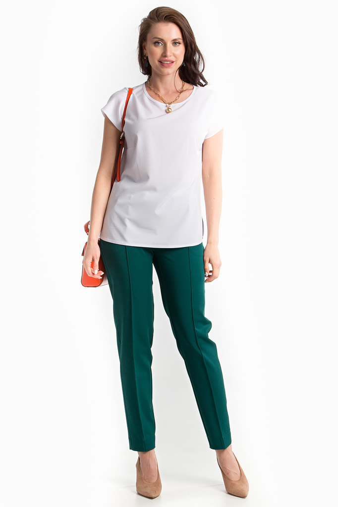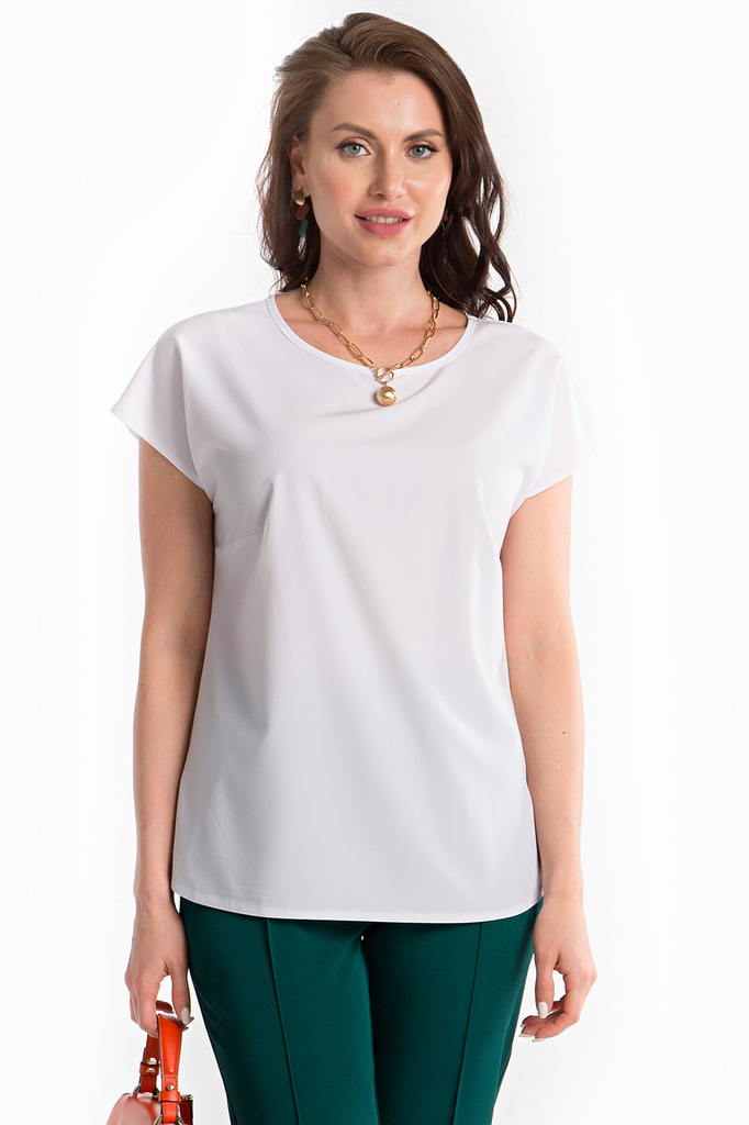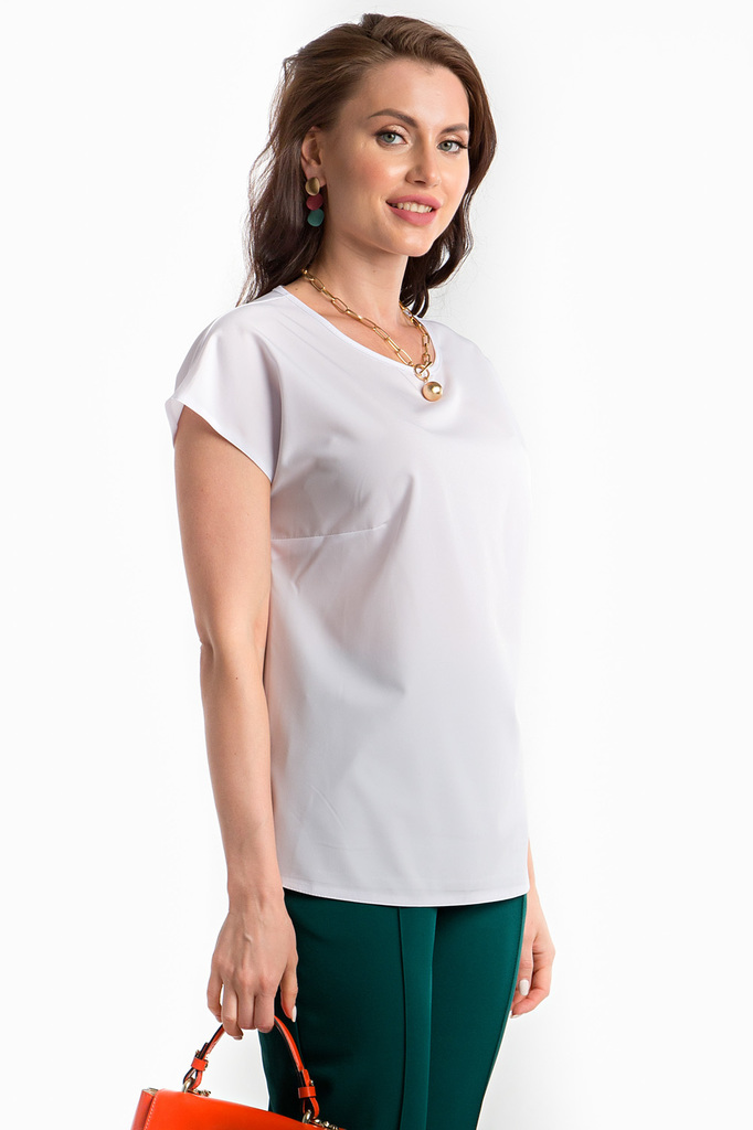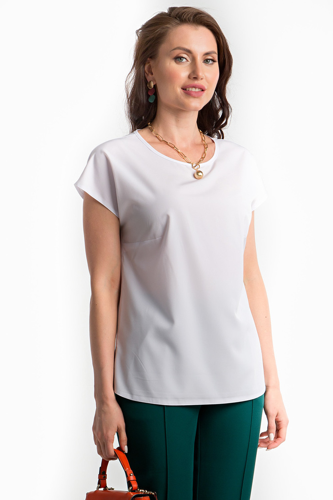 Белая блуза абсолютно базовая вещь для женского гардероба! На фото представлена с брючками из комплекта "Модный приговор" в зеленом оттенке. - Белая блуза из легкой ткани, по бокам небольшие разрезы; ... Показать описание- Рукав цельнокроенный, короткий; - Вырез горловины круглый, нагрудные вытачки; - Ткань: блузочная; - Состав: п/э 100; - Цвет: белый; - Размерная линейка 44-54; - Длина изделия по спинке: 44/ 58 см, 46/ 59 см, 48/ 60 см, 50/ 61 см, 52/ 62 см, 54/ 63 см; - Параметры модели: размер 44, рост 170 см, грудь 93 см, талия 64 см, бедра 94 см. - Рекомендована ручная стирка при 30 С;