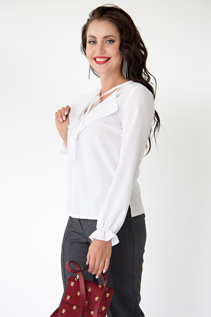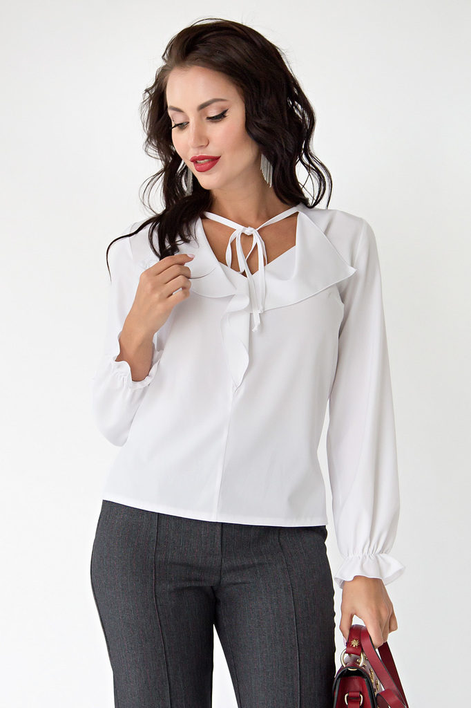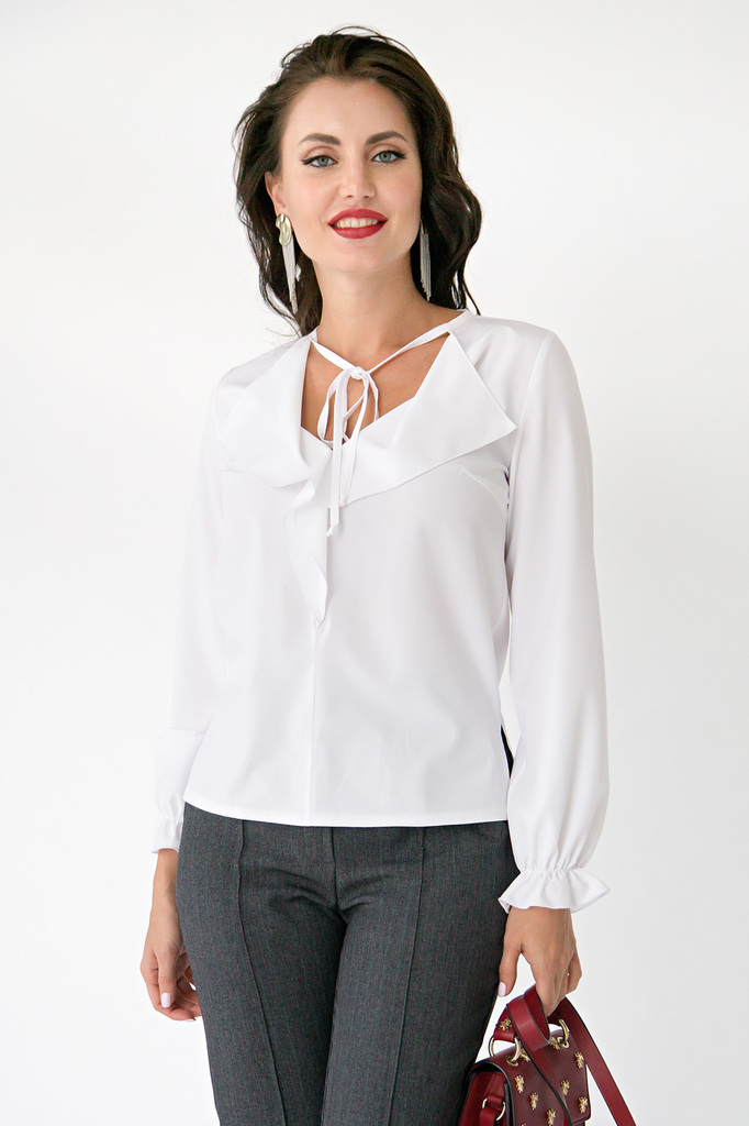 Белая классическая блуза актуальна в любое время года, ослепляйте своей красотой и всегда будьте на высоте! - Стильная блуза на каждый день в белом цвете; - Блуза прямого покроя, по бокам разрезы; - Р... Показать описаниеукав втачной, длинный, по низу волан присборенный на резинку; - Перед разрезной, украшен воланом в форме крылышек; - Завязки выходят по переду горловины блузы и добавляют модели актуальности; - Ткань: блузочная; - Состав: 97 п/э, эластан 3; - Цвет: белый; - Размерная линейка 46-56; - Длина изделия: 46/ 58 см, 48/ 59 см, 50/ 60 см, 52/ 61 см, 54/ 62 см, 56/ 63 см; - Параметры модели: размер 44, рост 170 см; - Рекомендована ручная стирка при 30 С.