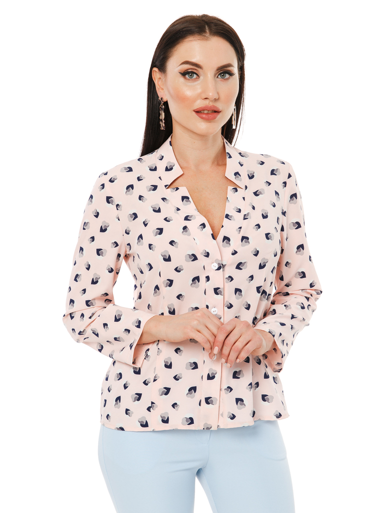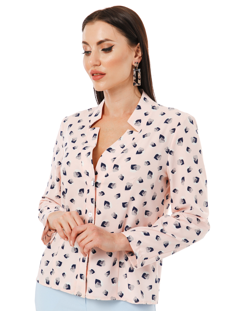 Очередной дизайнерский подарок для Вас! Стильная блуза на каждый день, отличный компаньон к юбкам, брючкам и джинсам. Блуза прямого силуэта, из ткани с красивым принтом "сердца"; Рукав втачной, длинны... Показать описанией, прямой к низу; По переду планка с функциональными пуговицами; Спинка разрезная; Очень красивый V образный ворот, с акцентными вырезами по бокам; Ткань: 97 полиэстер, 3 эластан; Принт: сердечки; Цвет: нежный персиковый оттенок; Размеры: 46 - 56; Длина изделия: 46 - 61 см, 48 - 61 см, 50 - 61 см, 52 - 61 см, 54 - 61 см, 56 - 63 см; Рекомендована только ручная стирка при 30 С; Параметры модели: рост 170 см, грудь 93 см, талия 64 см, бедра 94 см.