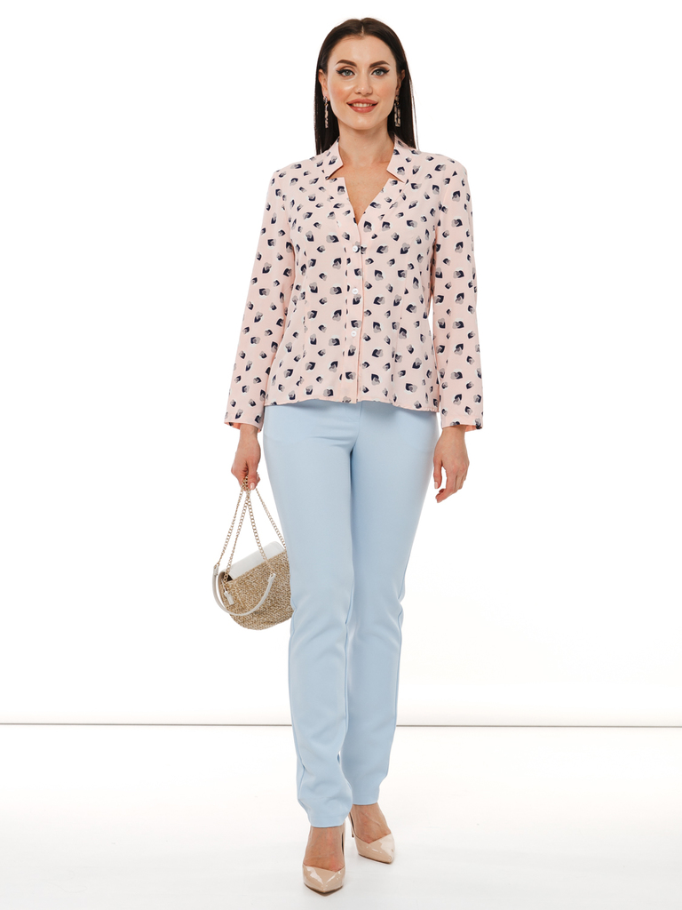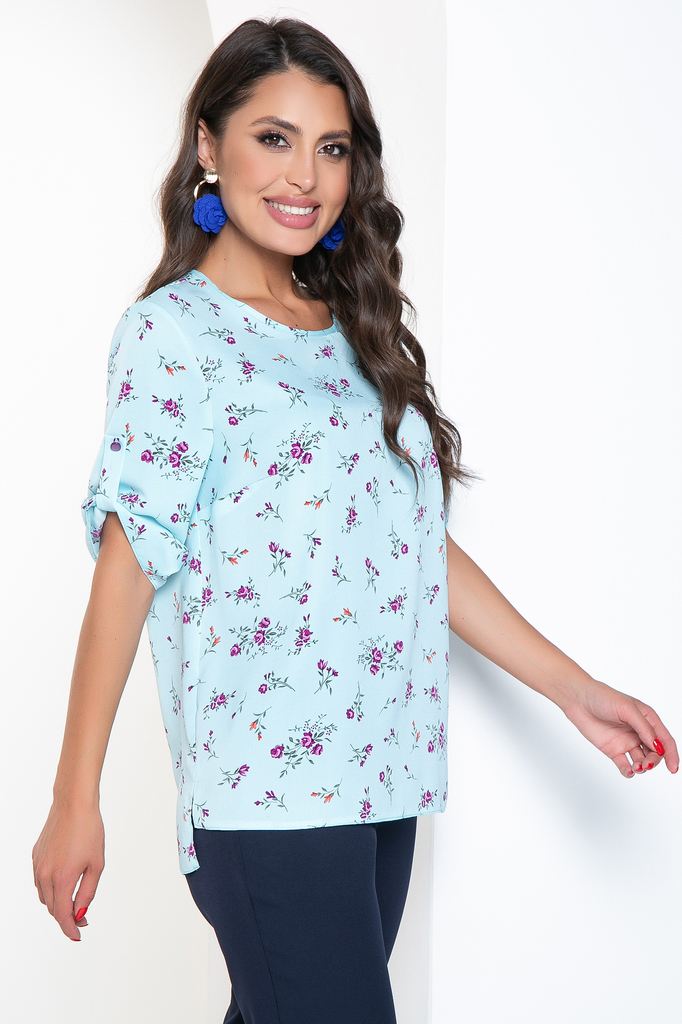 Нежно-голубая блуза с цветочным принтом - женственно, романтично, изящно. Отлично впишется в офисный дресс-код, станет верной спутницей на романтическом свидании. Одинаково хорошо смотрится с брючками... Показать описание и с юбками! Блуза прямого кроя, вырез горловины округлый; Низ изделия ровный, небольшие разрезы по бокам, спинка удлиненная; Рукав втачной, до локтя; Рукав украшает пата и красивая пуговка; Ткань: блузочная "Прада"; Состав: 95% п/э, 5% эластан; Цвет: нежно-голубой; Принт: цветочный; Размерная линейка: 46-56; Длина изделия: 46 - 66 см, 48 - 67 см, 50 - 68 см, 52 - 69 см, 54 - 70 см, 56 - 71 см; Параметры модели: рост 170 см, грудь 86 см, талия 60 см, бедра 93 см; Рекомендована ручная стирка при 30 С.
