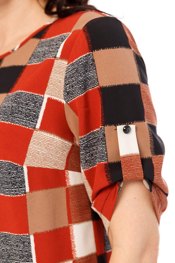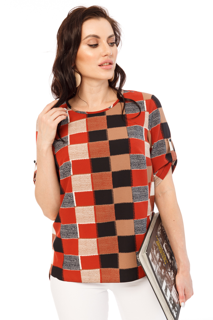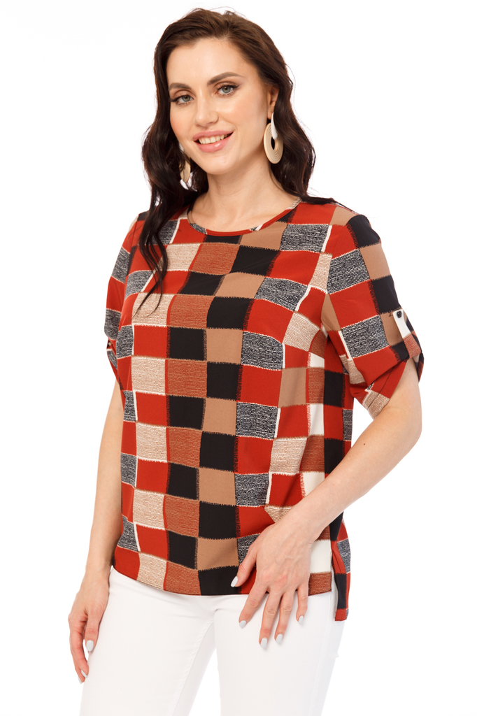 Идеальная блуза прекрасно дополнит Ваш гардероб, ведь она универсальна! Одинакова шикарно смотрится с брючками и с юбками! Блуза прямого кроя, вырез горловины округлый; Низ изделия ровный, небольшие р... Показать описаниеазрезы по бокам, спинка удлиненная; Рукав втачной, до локтя; Рукав украшает пата и красивая пуговка; Ткань: блузочная "Прада"; Состав: 95% полиэстер, 5% эластан; Цвет: красный, терракот, черный, беж; Принт: квадраты; Размерная линейка: 46-56; Длина изделия: 46 - 66 см, 48 - 67 см, 50 - 68 см, 52 - 69 см, 54 - 70 см, 56 - 71 см; Параметры модели: рост 170 см, грудь 93 см, талия 64 см, бедра 94 см Рекомендована ручная стирка при 30 С.