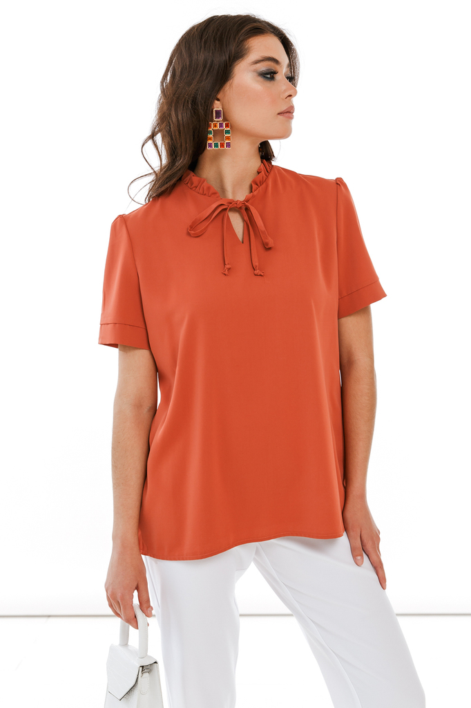 Самая эффектная блузка для офиса! Данная модель всесезонная, что позволит дополнить базовый гардероб, который будет радовать долгие годы! Уникальность блузки в том, что Вы можете носить её как часть с... Показать описаниетрогого офисного образа, так и создать casual look! Красивая блузка свободного кроя на каждый день; Рукав втачной, короткий; Завязки выходят по переду горловины блузы и добавляют модели актуальности; Состав: полиэстер 85, вискоза 12, эластан 3; Цвет: терракот; Длина изделия: 44/ 63 см, 46/ 64 см, 48/ 64 см, 50/ 64 см, 52/ 66 см, 54/ 66 см, 56/ 67 см; Рекомендована ручная стирка при 30 С.