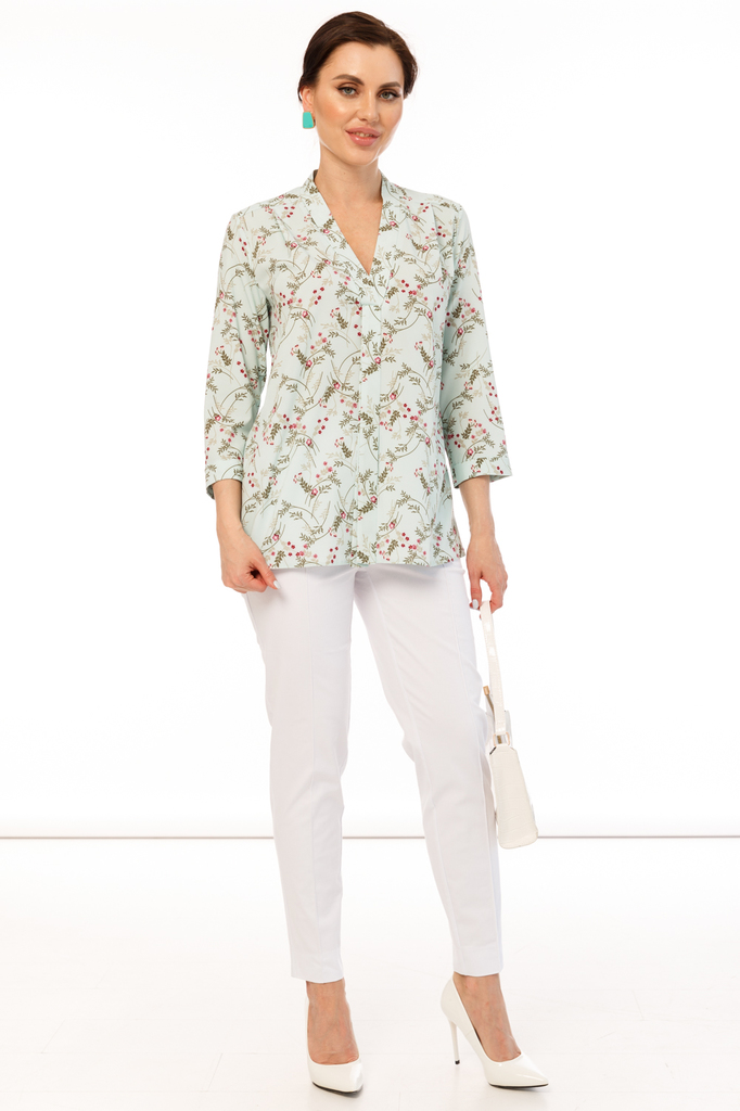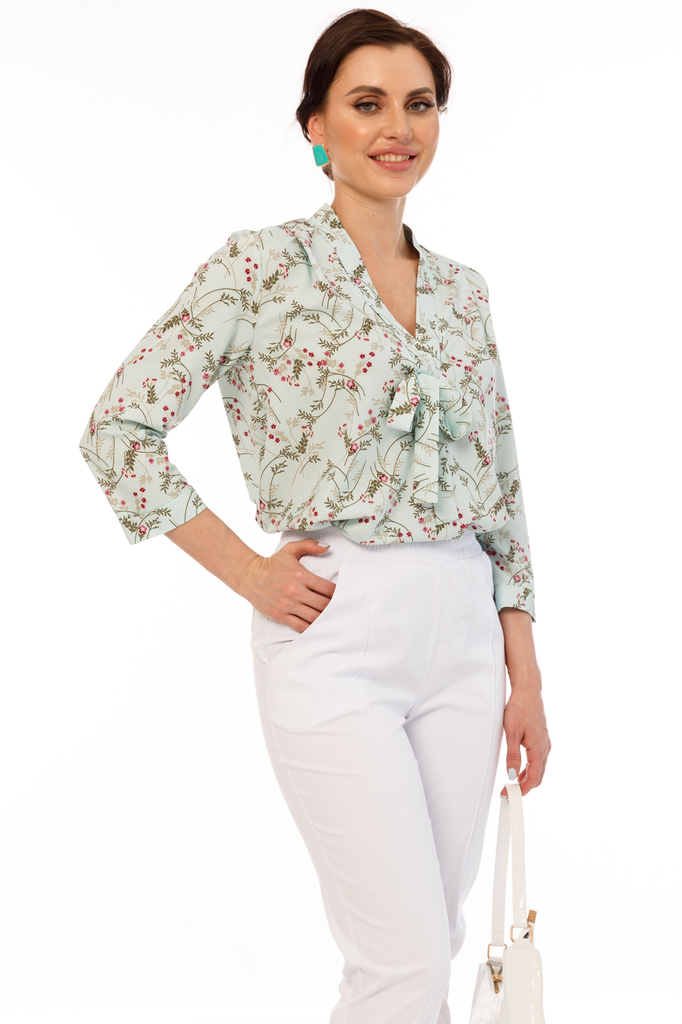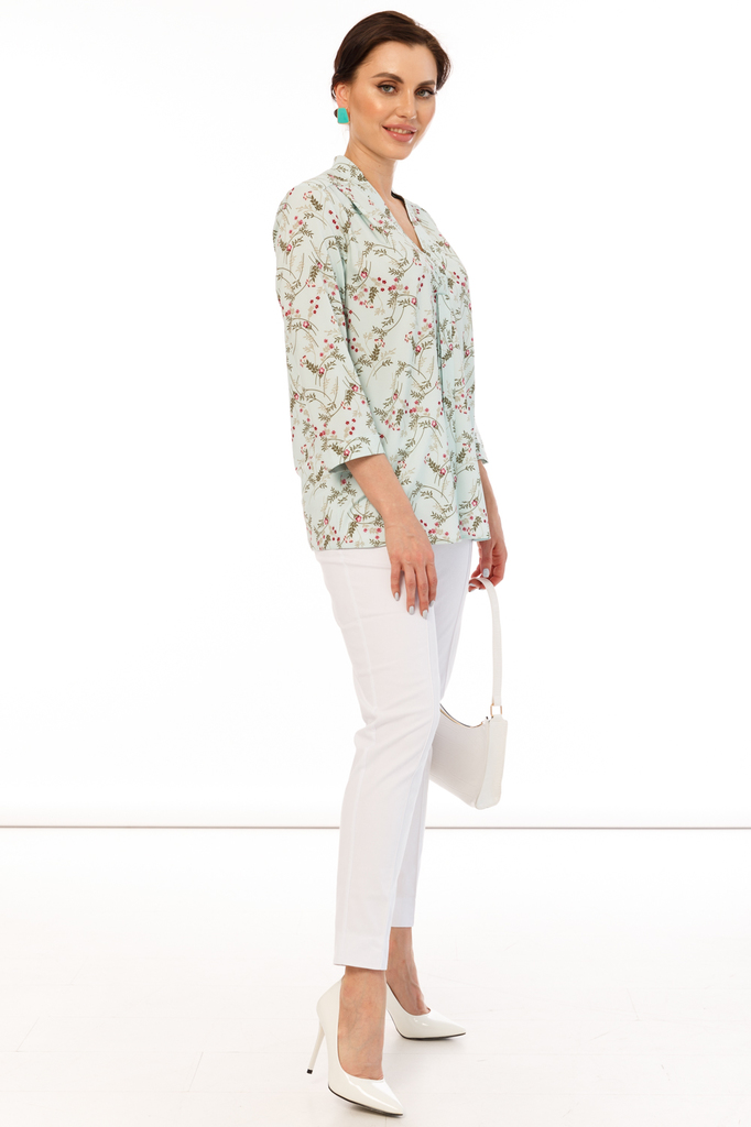 Удачно выбранный оттенок способен преобразить весь образ, сделать его неповторимым и стильным. Новая блуза из коллекции "Весна-лето'21" будет подчеркивать Вашу индивидуальность! Блуза прямого силуэта,... Показать описание выполнена из очень приятной к телу ткани; Рукав втачной, три четвертых, низ рукава с подворотом; По спинке отрезная кокетка, заложена декоративная складка; Воротник отложной, мягко переходит в галстук, который можно завязать на бант; Ткань: блузочная ткань; Состав: 95% полиэстер, 5% эластан; Цвет: мятный; Принт: цветы / веточки; Размерная линейка: 46-56; Длина изделия по спинке: 46 - 66 см, 48 - 67 см, 50 - 68 см, 52 - 69 см, 54 - 70 см, 56 - 71 см; Рекомендована ручная стирка при 30 С; Параметры модели: размер 44, рост 170 см, грудь 93 см, талия 64 см, бедра 94 см.
