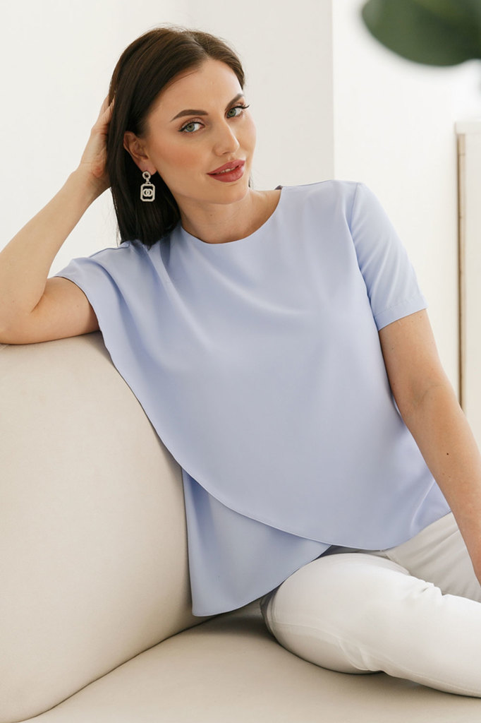 Блуза с коротким рукавом в невероятном голубом оттенке "топаз" создаст яркий и запоминающийся образ. Сочетайте с брюками, юбкой-карандаш, кожаными брючками различных фасонов и даже с джинсами. Блуза п... Показать описаниеолуприлегающего силуэта с голографией, ворот - "качеля"; Рукав короткий, цельнокроеный; По бокам блузы небольшие разрезы; Ткань: трикотаж с голографией; Состав: 100% п/э; Цвет: голубой (топаз); Размерная линейка: 44-54; Длина изделия по спинке: 44 / 57 см, 46 / 58 см, 48 / 59 см, 50 / 60 см, 52 / 61 см, 54 / 62 см; Замеры готового изделия: 44 / ОГ 92 см, 46 / ОГ 96 см, 48 / ОГ 100 см, 50 / ОГ 104 см, 52 / ОГ 108 см, 54 / ОГ 112 см; Допуск отклонения длины при массовом производстве 1-3 см является нормой; Рекомендована ручная стирка при 30 С; Параметры модели: рост 170 см, грудь 86 см, талия 60 см, бедра 93 см.