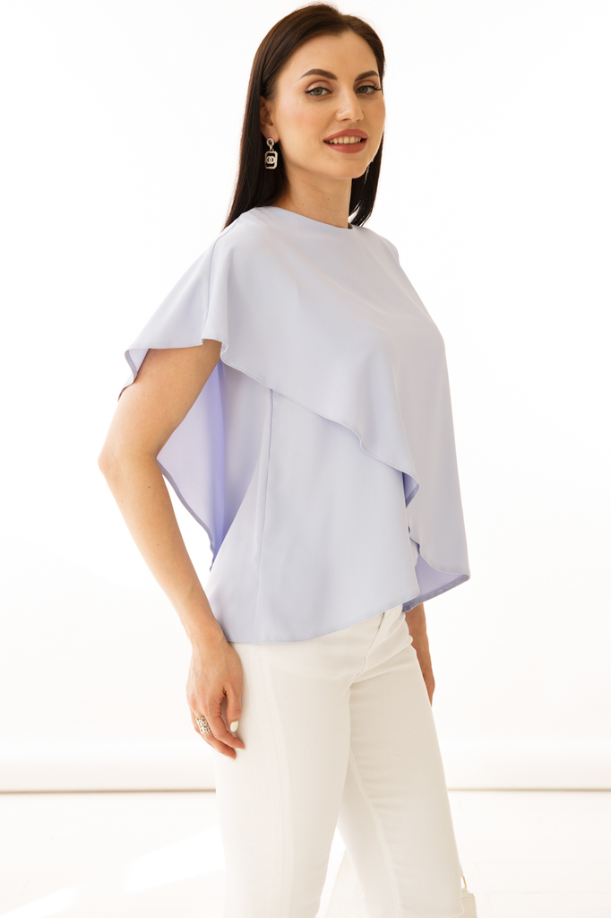 Лето - это время для ярких красок и нежных образов! Пополните свой гардероб идеально блузой - её можно носить с любым низов и обувью! Дизайнерская блуза из легкой ткани подойдет для Ваших летних образ... Показать описаниеов; Изделие свободного кроя, низ ассиметричный, с имитацией запаха; Рукава разного кроя: правый - цельнокроеный, левый - втачной; Застегивается на пуговицу; Состав: 95 полиэстер, 5 спандекс; Цвет: сирень; Размерная линейка: 46-56; Длина изделия: 46 - 54 см, 48 - 55 см, 50 - 56 см, 52 -57 см, 54 - 58 см, 56 - 59 см; Рекомендована ручная стирка при 30 С; Параметры модели: размер 44, рост 170 см, грудь 93 см, талия 64 см, бедра 94 см.