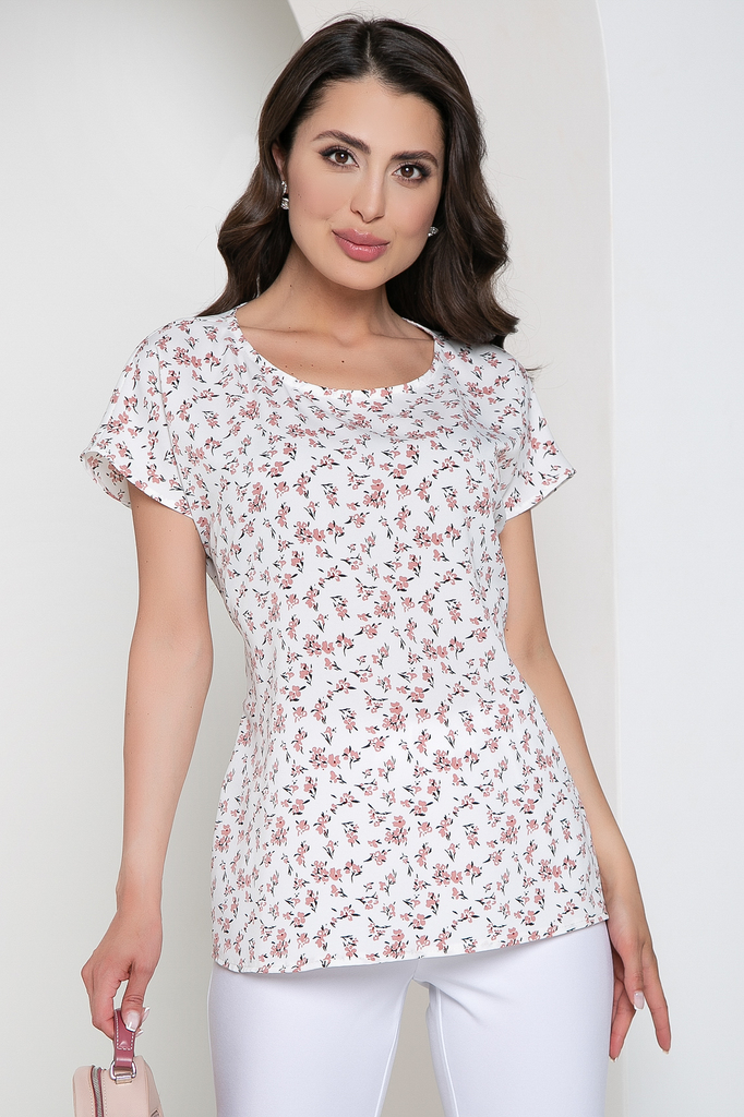 Блуза прекрасно дополнит Ваш гардероб, ведь она универсальна! Одинакова шикарно смотрится с брючками и юбками, а так же в кежуал образе с джинсами! Блуза прямого кроя, вырез горловины округлый; Издели... Показать описаниее с секретом - поясок можно завязать по переду или по спинке. Экспериментируйте и удивляйте, каждый день создавая новый образ!; Рукав цельнокроенный, короткий. Блуза без замков и подкладки; Ткань: плательная; Состав: 95% полиэстер, 5% эластан; Цвет: белый; Принт: розовые цветы; Размерная линейка: 44-56; Длина изделия: 44 - 65 см, 46 - 66 см, 48 - 67 см, 50 - 68 см, 52 - 69 см, 54 - 70 см, 56 - 71 см; Рекомендована ручная стирка при 30 С; Параметры модели: рост 170 см, грудь 86 см, талия 60 см, бедра 93 см.