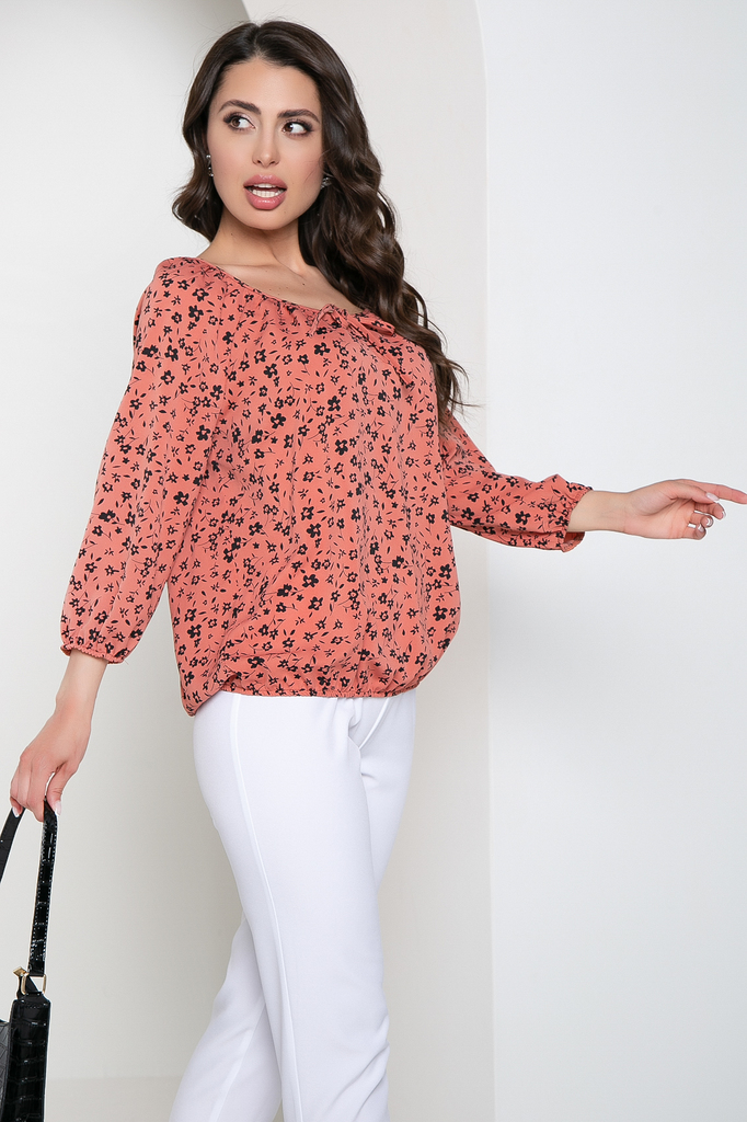 С помощью нашей новой блузы Вы сможете воплотить в реальность самые привлекательные образы! Универсальная вещь в гардеробе, присутствующая в гардеробе каждой женщины! Блуза прямого кроя из блузочной ... Показать описаниеткани, вырез горловины округлый; Низ изделия ровный, регулируется резинкой; Рукав до локтя, на резинке формирует небольшой фонарик; По переду завязки, которые образуют вырез капельку в зоне декольте; Ткань: блузочная; Состав: 95% полиэстер, 5% эластан; Цвет: светлый коралловый; Принт: мелкие цветы в черном цвете; Размерная линейка: 46-56; Длина изделия по спинке: 46 - 62 см, 48 - 63 см, 50 - 64 см, 52 - 66 см, 54 - 68 см, 56 - 70 см; Рекомендована ручная стирка при 30 С; Параметры модели: рост 170 см, грудь 86 см, талия 60 см, бедра 93 см.