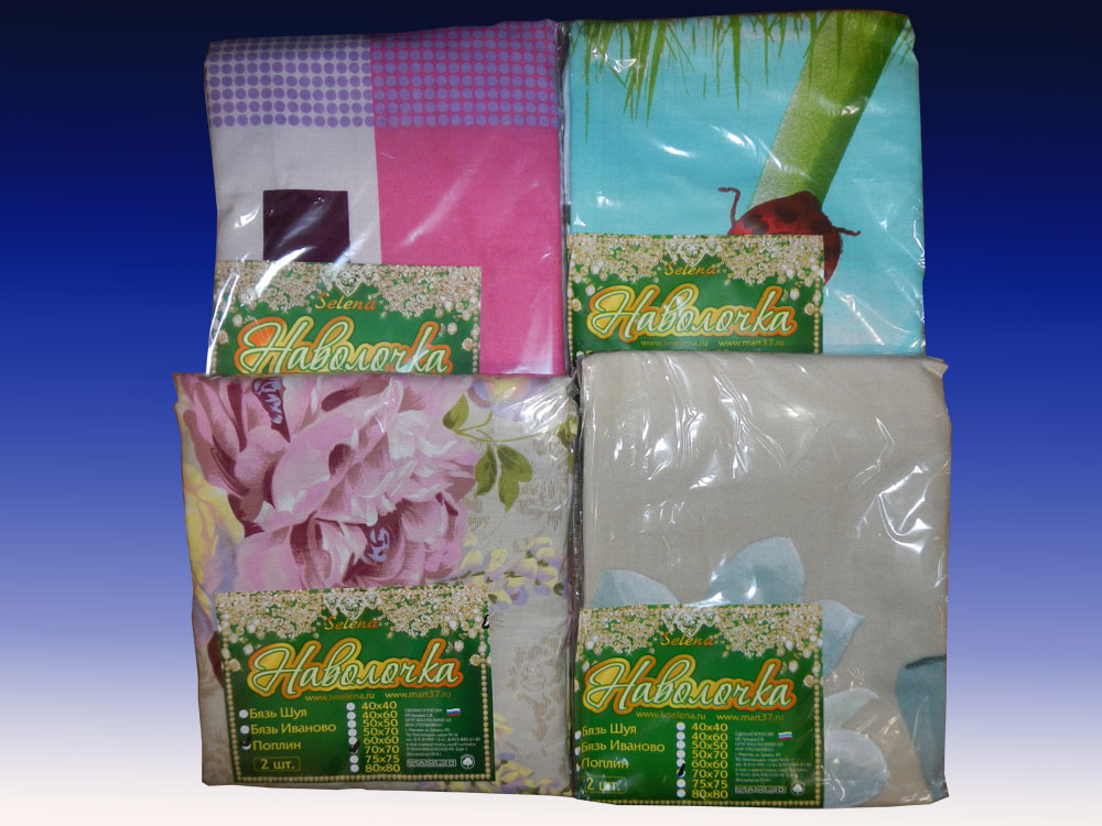 Материал: поплин. Состав: хлопок 100%. Плотность: 115 гр/кв.м. 40-40 - наволочки поплин - размер : 40/40 см. 50-50 - наволочки поплин - размер : 50/50 см. 50-70 - наволочки поплин - размер : 50/70 см.