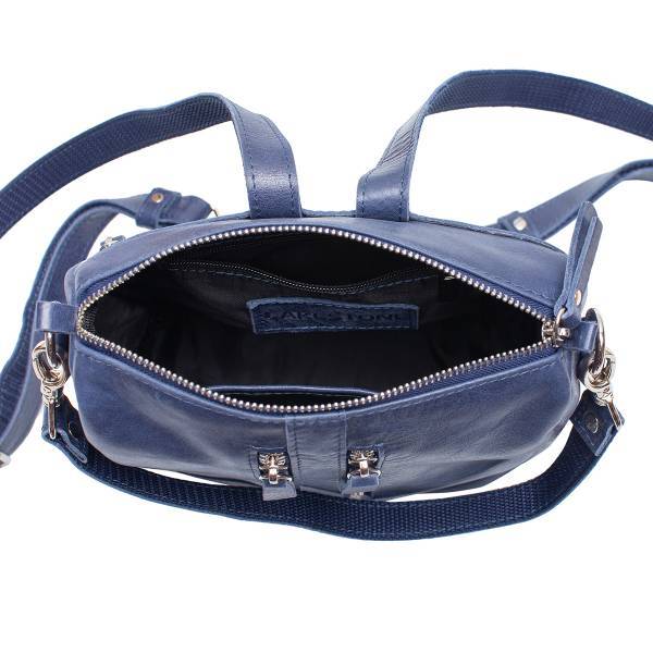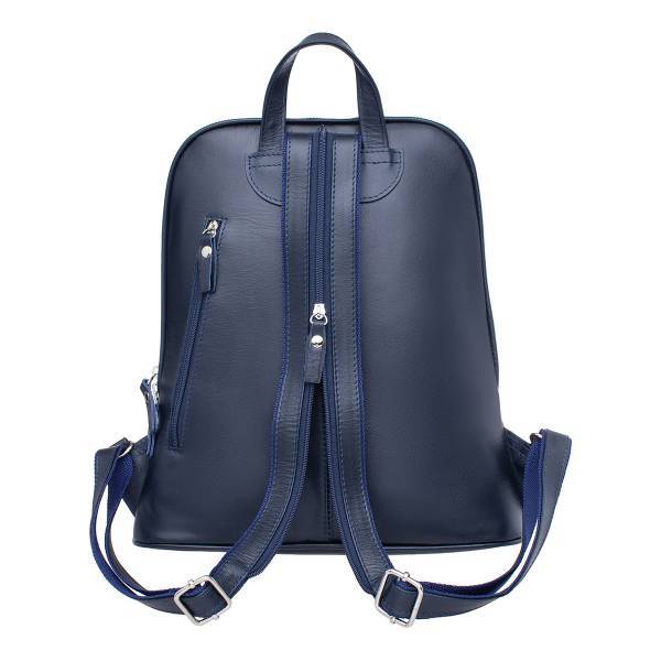 Синий женский рюкзак Copley Dark Blue выполнен в виде трапеции с расширенным основанием. Он изготовлен вручную из отборной 100% натуральной кожи лучшего качества. Его можно носить в руке при помощи не... Показать описаниебольшой удобной ручки, а также на плечах. При этом регулируемые кожаные лямки крепятся сзади и снабжены молнией, посредством которой они превращаются в один ремень для комфортной носки на одном плече. С тыльной стороны также присутствует вертикальный прорезной карманчик на молнии. Модель имеет два главных отделения разного размера и формата. Все они закрываются вверху застежкой-молнией. Внутри большего отсека можно поместить вещи формата А5. Присутствует дополнительный карман-сетка и отдел на застежке. Меньшее отделение содержит карман для визиток и канцтоваров и открытого типа. Лицевая часть разделена пополам продольной двойной строчкой и украшена сверху фирменным логотипом.