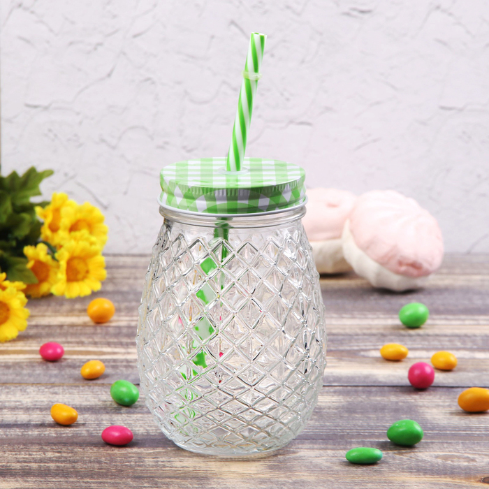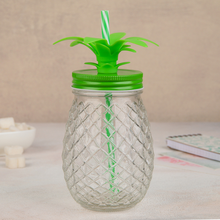 Банка «Ананас», 450 мл, с крышкой и трубочкой, цвет МИКС Вопросы по товару