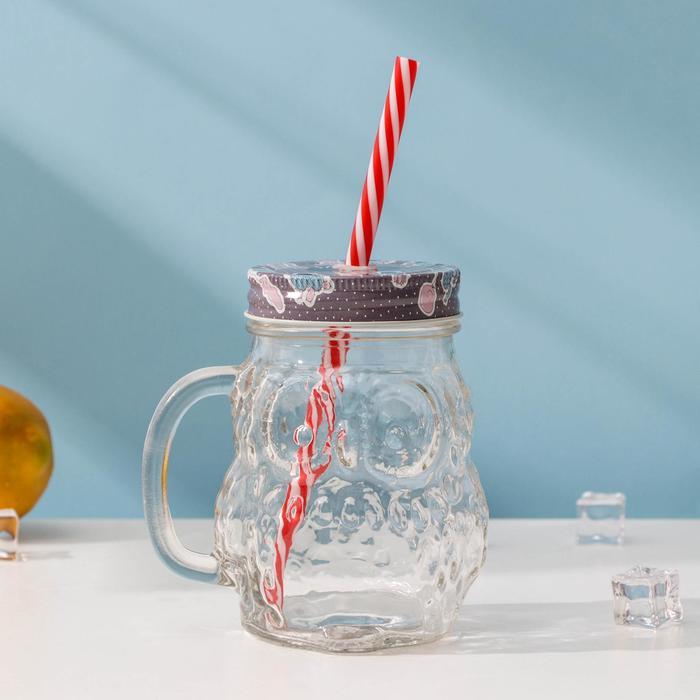Банка «Сова», 470 мл, с ручкой, крышкой и трубочкой, цвет МИКС Вопросы по товару