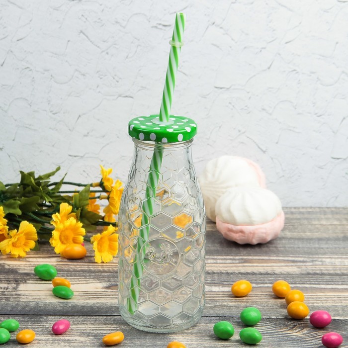 Бутыль «Соты», 300 мл, с крышкой под трубочку, цвета МИКС