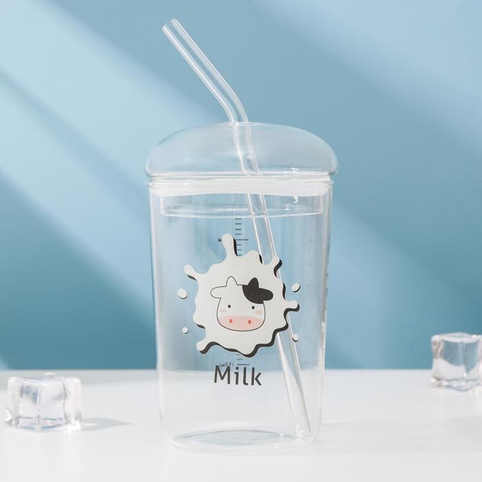 Банка с крышкой и трубочкой «Бурёнка», 450 мл, рисунок МИКС Вопросы по товару