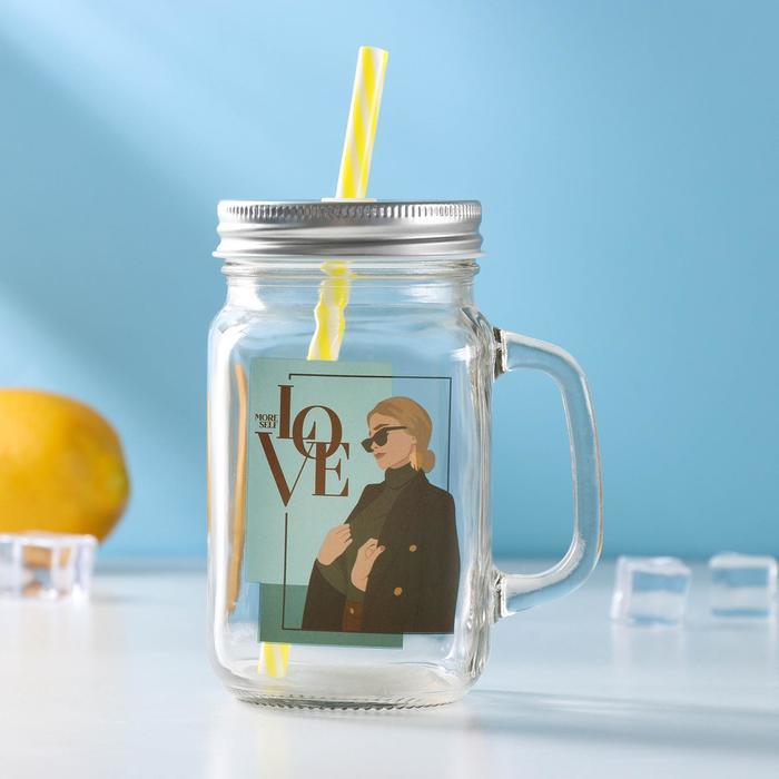 Банка с ручкой, крышкой и трубочкой Доляна «Журнал», 450 мл, 10?7,5?13 см