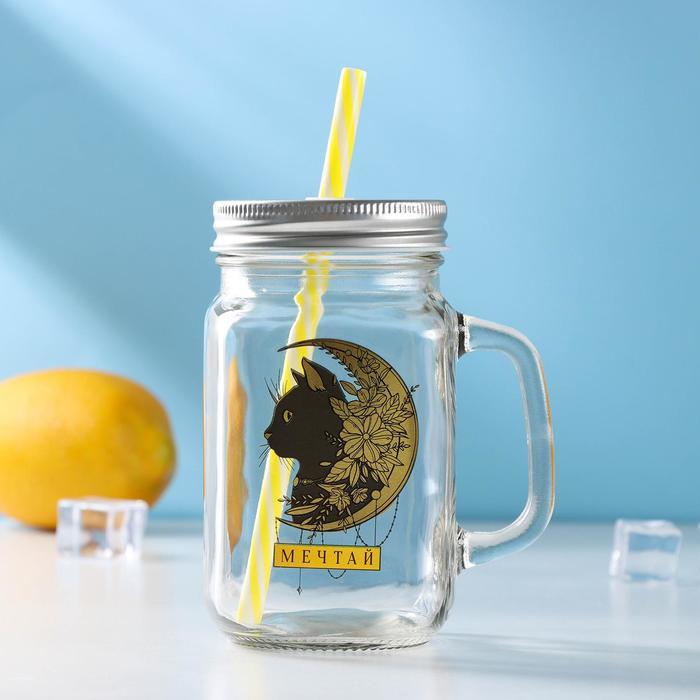 Банка с ручкой, крышкой и трубочкой Доляна «Месяц», 450 мл, 10?7,5?13 см Вопросы по товару
