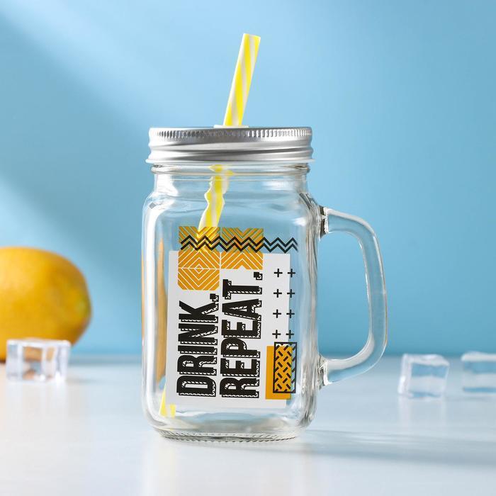 Банка с ручкой, крышкой и трубочкой Доляна «Рипит», 450 мл, 10?7,5?13 см