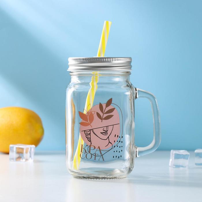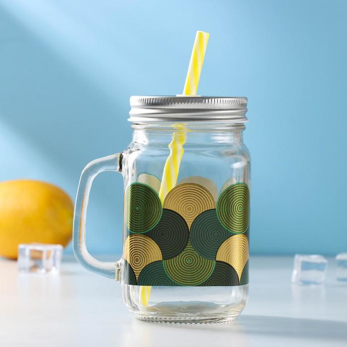 Банка с ручкой, крышкой и трубочкой Доляна «Винтаж», 450 мл, 10?7,5?13 см