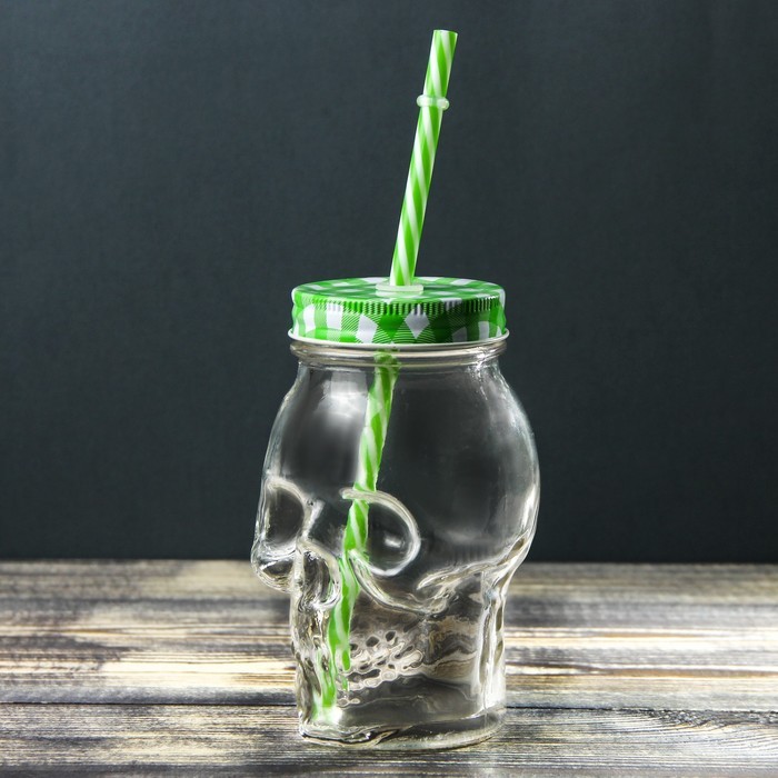 Банка крышкой и трубочкой «Череп», 9?9?14,5 см, цвет МИКС Вопросы по товару