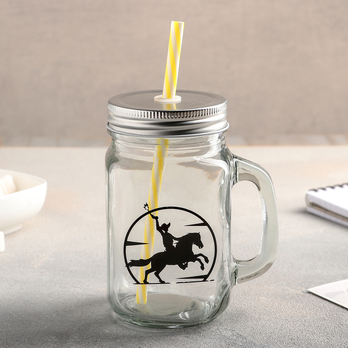 Банка с ручкой, крышкой и трубочкой Доляна «Ковбой», 450 мл, 10?7,5?13 см