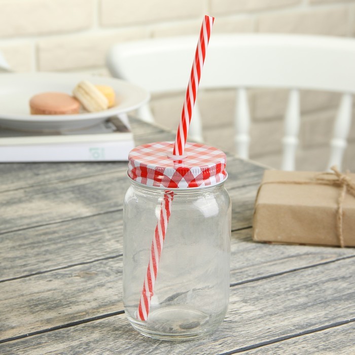 Банка с ручкой, крышкой и трубочкой Доляна «Журнал», 450 мл, 10?7,5?13 см Вопросы по товару